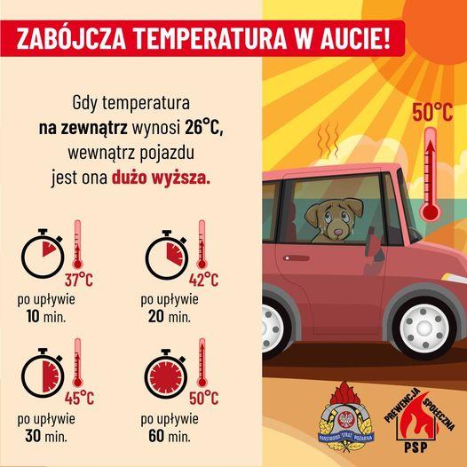 Po 10 minutach: Temperatura wewnątrz samochodu może osiągnąć 37°C