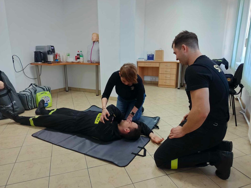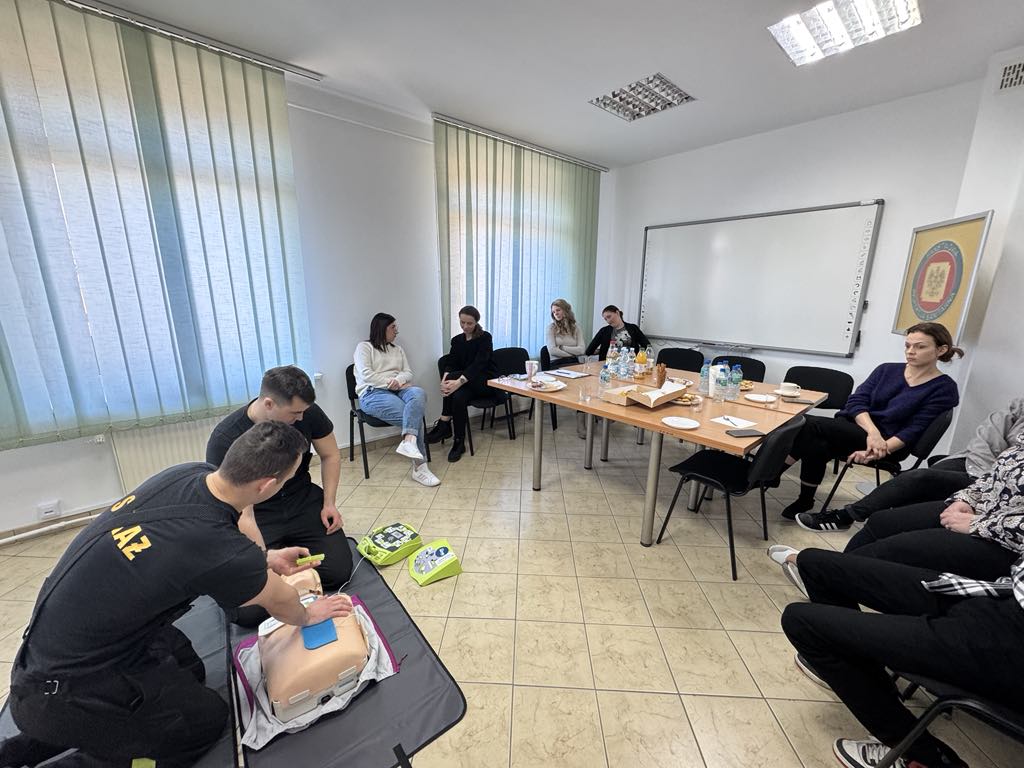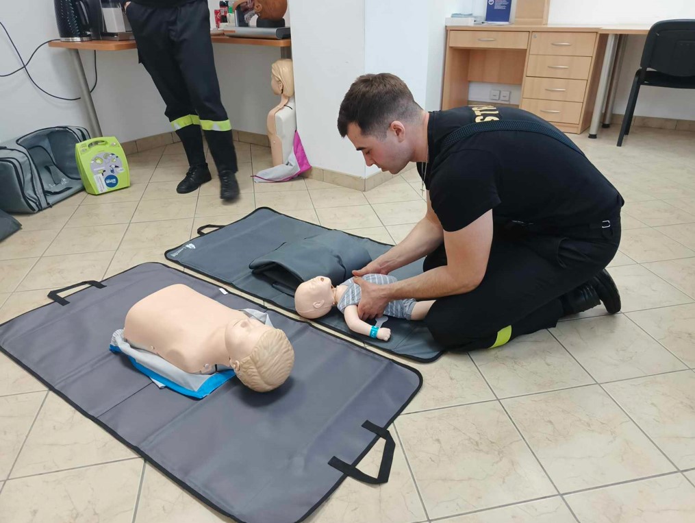 W dniu 20.03.2025 r. funkcjonariusze z KP PSP w Makowie Mazowieckim przeprowadzili szkolenie z zakresu udzielania pierwszej pomocy dla pracowników Powiatowej Stacji Sanitarno-Epidemiologicznej w Makowie Mazowieckim. Funkcjonariusze KP PSP w Makowie Mazowieckim zapoznali pracowników PSSE z najważniejszymi zagadnieniami z zakresu pierwszej pomocy m. in. resuscytacją krążeniowo-oddechową, zastosowaniem defibrylatora zewnętrznego, postępowaniem w przypadku ciała obcego w organizmie.