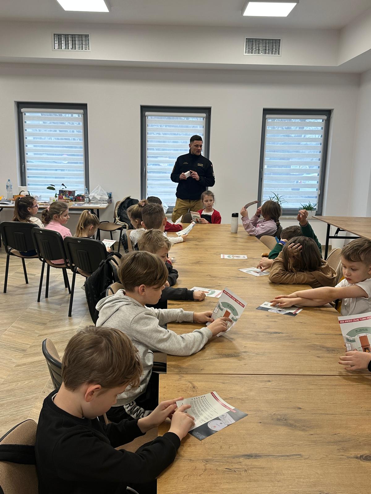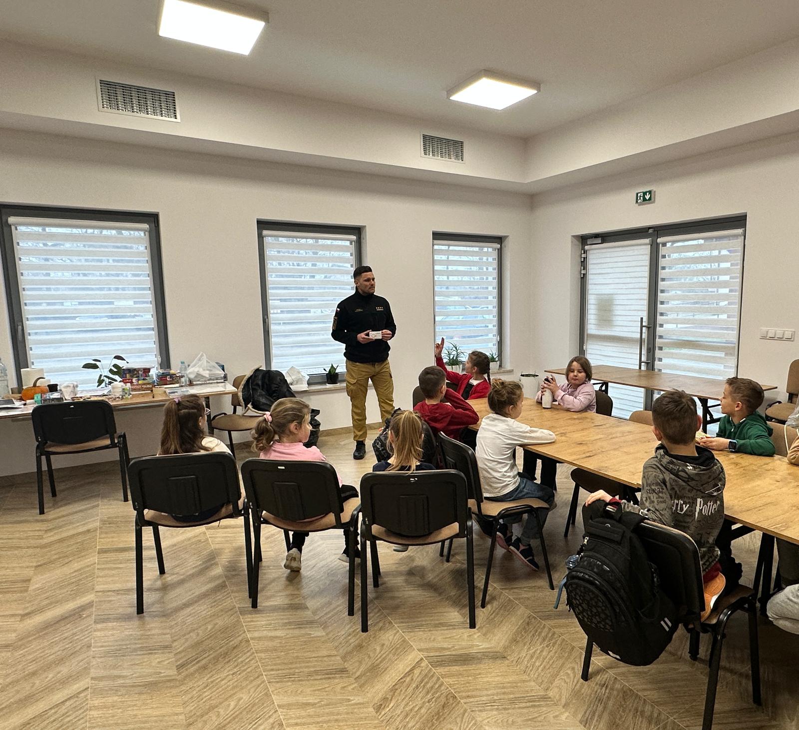 06.02.2025r. makowscy strażacy odwiedzili dzieci na zajęciach zorganizowanych przez Gminną Publiczną Bibliotekę w Młynarzach i Gminny Ośrodek Upowszechniania Kultury w Różanie. Zajęcia były zorganizowane w ramach zimowego wypoczynku dzieci i młodzieży. Funkcjonariusze przeprowadzili pogadankę na temat tlenku węgla i bezpieczeństwa podczas ferii zimowych. Dzieci miały doskonałą okazję zapoznać się z zawodem strażaka.