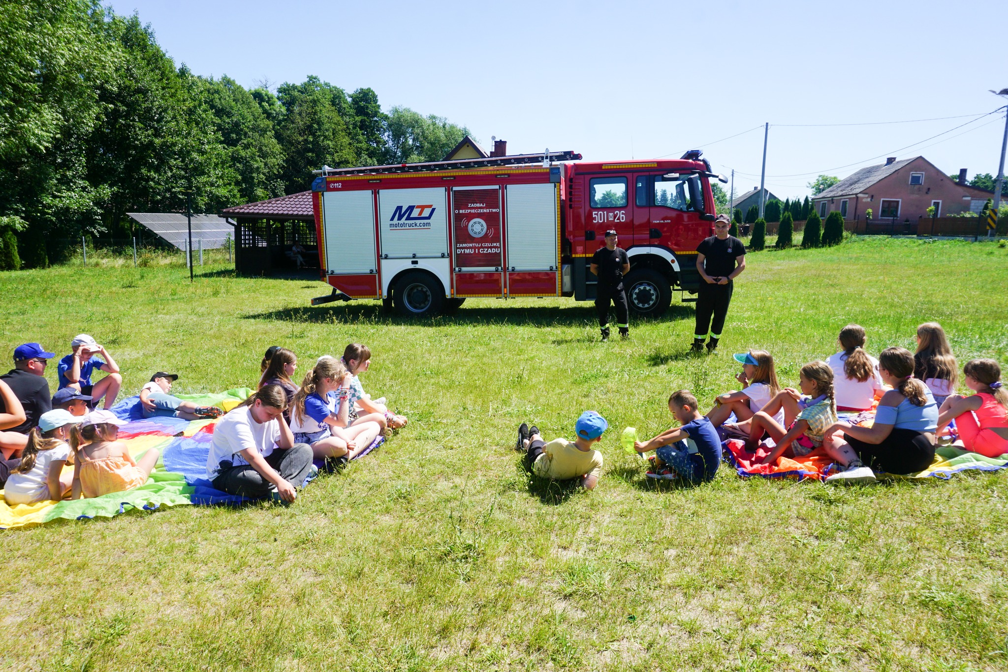 W gminie Różan ruszyły letnie zajęcia dla dzieci i młodzieży. Strażacy z Komendy Powiatowej Państwowej Straży Pożarnej w Makowie Mazowieckim odwiedzili dzieci w miejscowościach - Załęże Wielkie, Szygi i Dzbądz. Funkcjonariusze przeprowadzili pogadankę na temat tlenku węgla, bezpieczeństwa podczas wypoczynku nad wodą oraz niebezpieczeństwach związanych z pożarami lasów.