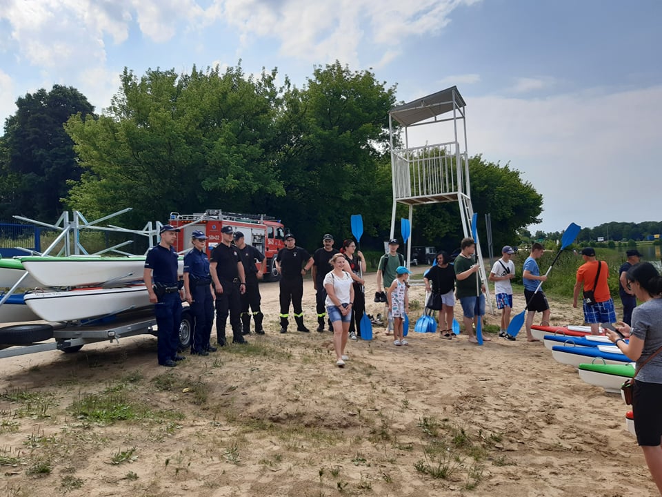 13 lipca 2021r. Strażacy z Komendy Powiatowej Państwowej Straży Pożarnej w Makowie Mazowieckim oraz Ochotniczej Straży Pożarnej w Ogonach we współpracy z Komendą Powiatową Policji w Makowie Mazowieckim przeprowadzili na terenie zalewu miejskiego w Makowie Mazowieckim zajęcia z zakresu prewencji społecznej dla turnusu kolonijnego Ośrodka Szkolenia i Wychowania w Jaciążku. Tematyka obejmowała bezpieczeństwo podczas wypoczynku nad wodą, zasady postępowania podczas zauważenia zagrożenia, a także podstawowe zasady udzielania pierwszej pomocy. Młodzież miała także okazję zapoznania się ze sprzętem, który znajduje się na wyposażeniu Specjalistycznej Grupy Ratownictwa Wodnego „Maków 5’. Po przeprowadzeniu pogadanki strażacy zabezpieczyli spływ kajakowy po zalewie. Na zakończenie strażacy otrzymali słodki upominek.