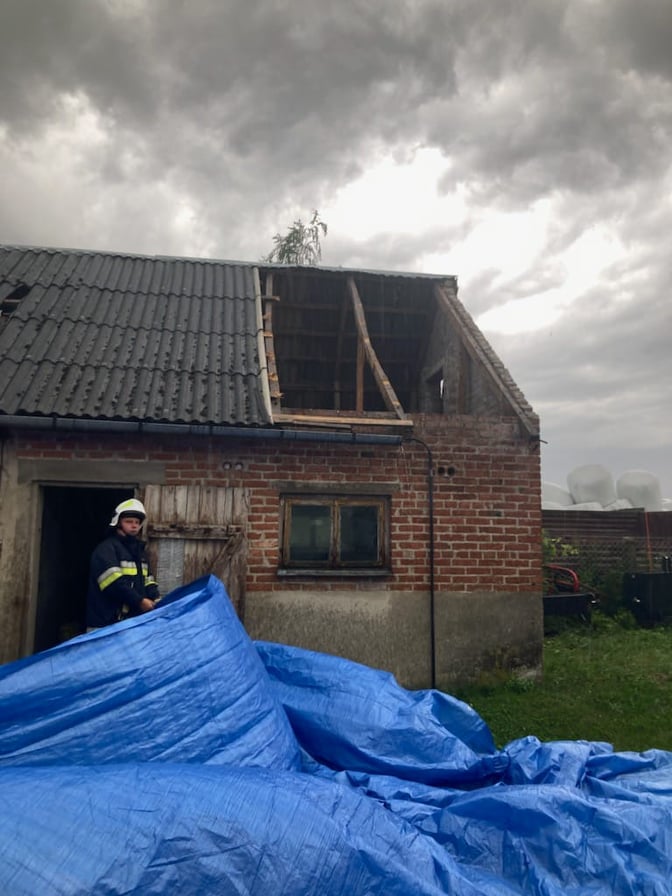 12 lipca strażacy interweniowali przy 4 zdarzeniach: uszkodzony dach na budynku gospodarczym w miejscowości Grabowo, drzewo na linii energetycznej oraz 2 konary drzew na drodze.