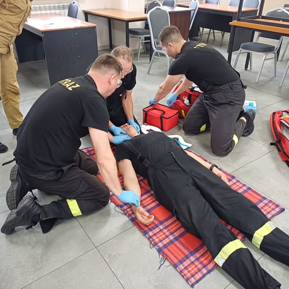 5 listopada 2025 r. Ośrodek Szkolenia w Warszawie Komendy Wojewódzkiej PSP w Warszawie przeprowadził w naszej komendzie egzamin potwierdzający tytuł ratownika z zakresu kwalifikowanej pierwszej pomocy dla strażaków z KP PSP w Makowie Mazowieckim i KP PSP w Wyszkowie. Przewodniczącym komisji egzaminacyjnej była Pani mgr. Katarzyna Szubińska – Wojewódzki Koordynator Ratownictwa Medycznego PSP w Warszawie członkami komisji byli mł. ogn. Paweł Rogala - Powiatowy Koordynator Ratownictwa Medycznego PSP w Makowie Mazowieckim oraz str. Agata Zakrzewska. Do egzaminu przystąpiło 20 funkcjonariuszy, część teoretyczną i praktyczną zaliczyło 19 strażaków.