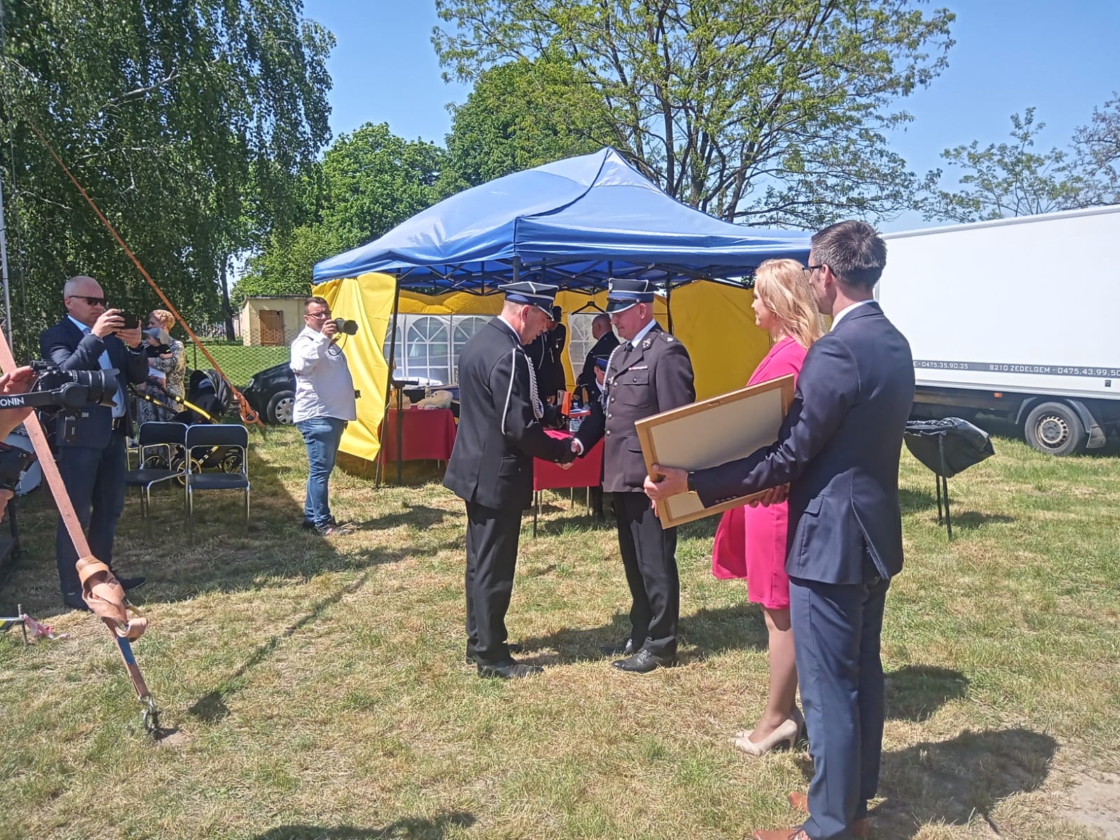 W uroczystości udział wzięli, m.in. Wicepremier – Henryk Kowalczyk, Zastępca Mazowieckiego Komendanta Wojewódzkiego PSP - st. bryg. Tomasz Cybul, Komendant Powiatowy PSP w Makowie Mazowieckim – mł. bryg. Cezary Pałubiński, Wiceprezes Zarządu Oddziału Wojewódzkiego Związku OSP RP woj. Mazowieckiego, jednocześnie Radny Sejmiku Mazowieckiego - dh Mirosław Augustyniak, Zastępca Dyrektora Krajowego Ośrodka Wsparcia Rolnictwa, jednocześnie Radna Sejmiku Mazowieckiego – Joanna Bala, Radny Sejmiku Mazowieckiego Marcin Grabowski, Z-ca Prezesa WFOŚiGW Kamila Mokrzycka, Z-ca Dyrektora ARiMR - Anna Ignatowicz, Wicestarosta Powiatu Makowksiego - Dariusz Wierzbicki, przedstawiciele lokalnej władzy samorządowej gmin i powiatu makowskiego, Kierownicy i Komendanci służb i instytucji oraz lokalna społeczność.