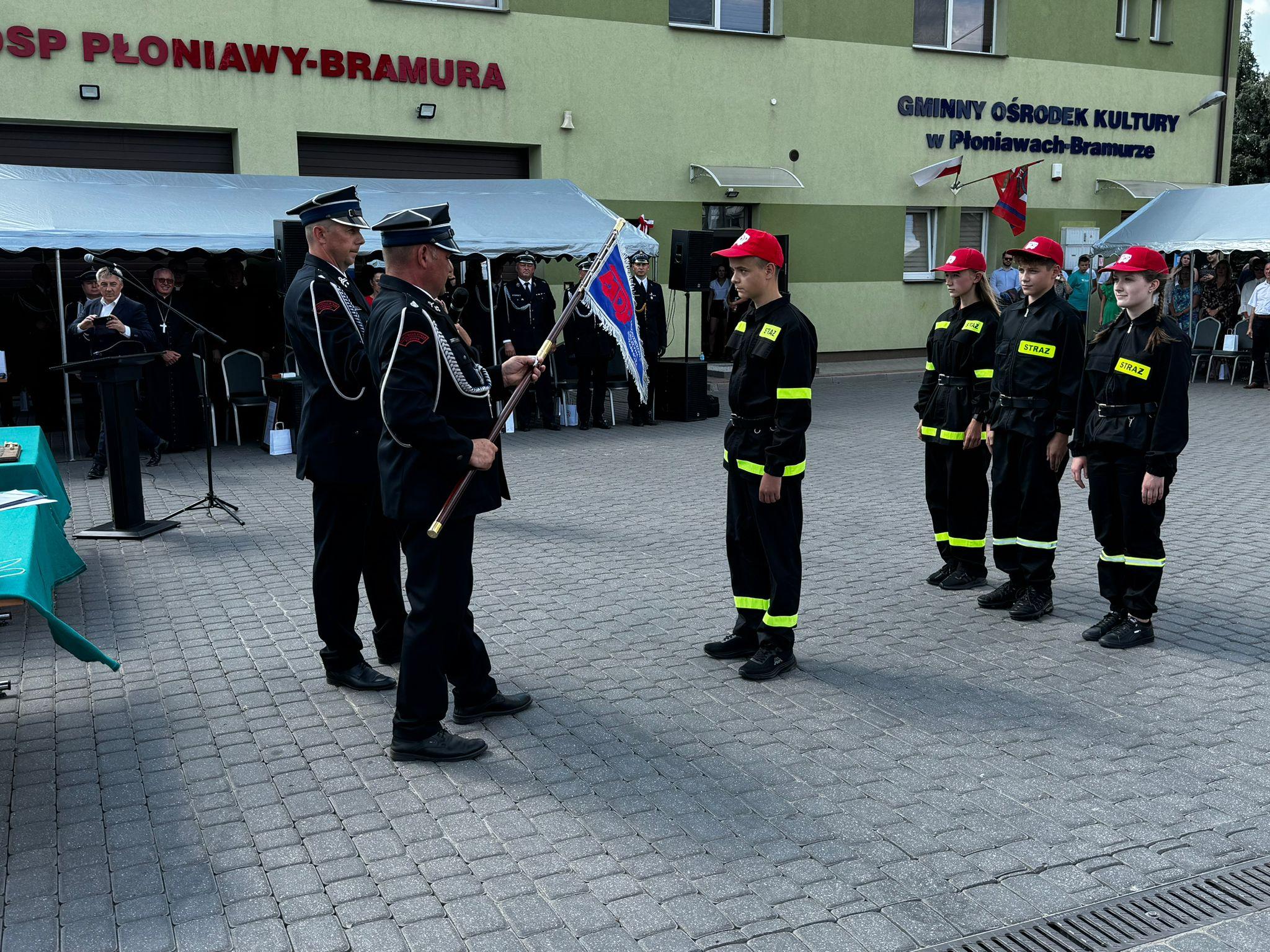 Podczas uroczystości Młodzieżowa Drużyna Pożarnicza działająca przy OSP Płoniawy – Bramura otrzymała proporzec MDP.