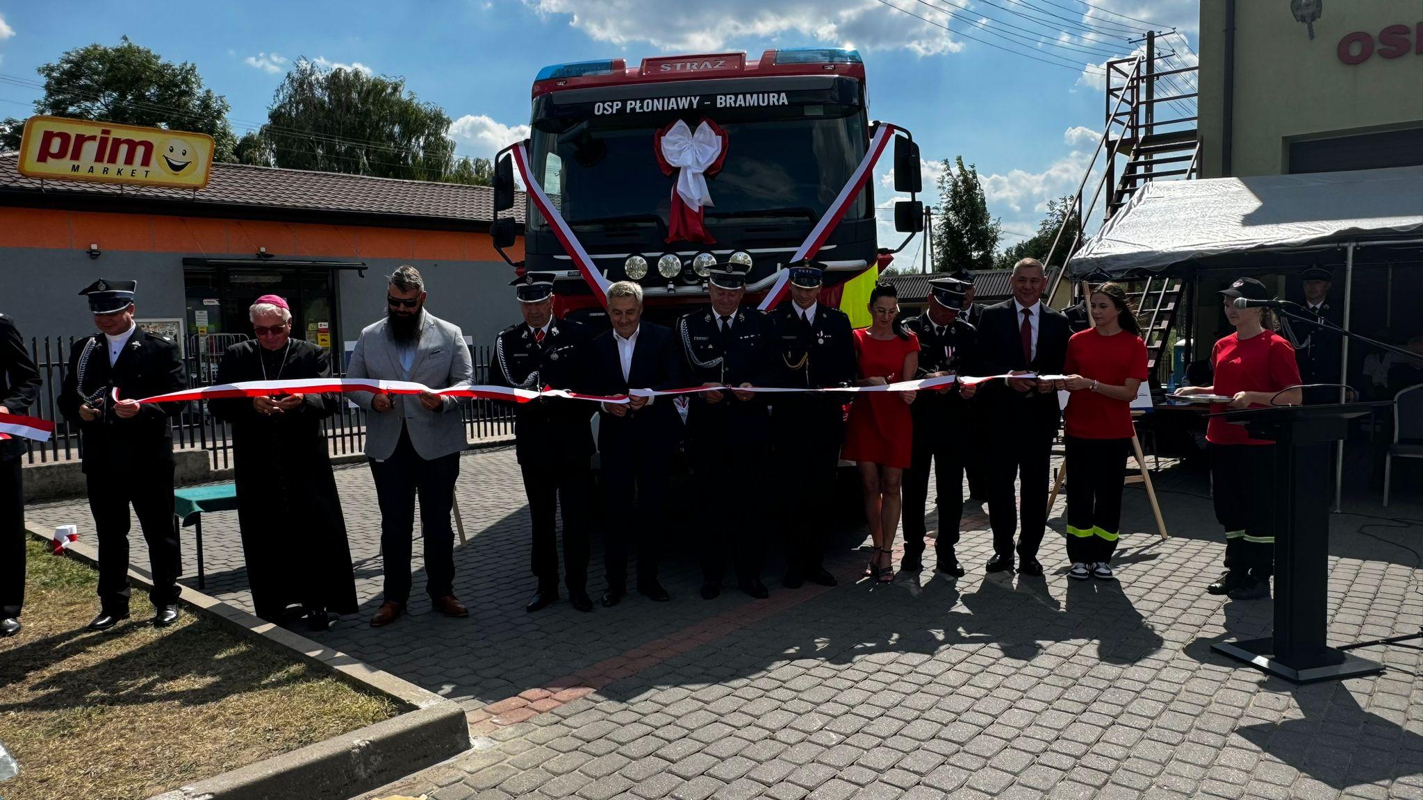 Kolejnym punktem uroczystości było przekazanie nowego ciężkiego samochodu pożarniczego GCBA 5/32 Volvo dla OSP Płoniawy – Bramura.