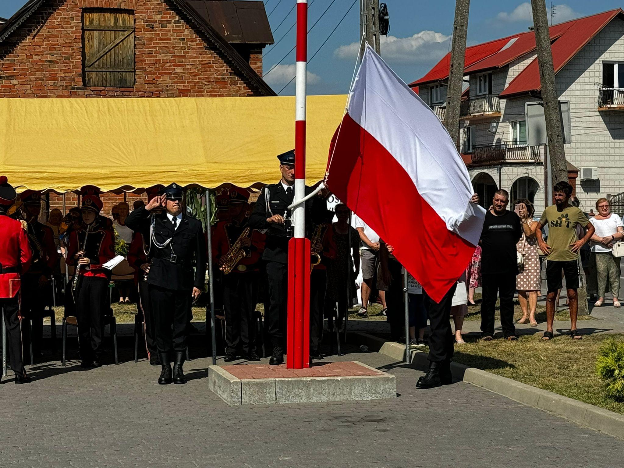 Główną część uroczystości rozpoczął meldunek złożony Wiceprezesowi Zarządu Wojewódzkiego ZOSP RP dh. Mirosławowi Augustyniakowi przez dowódcę uroczystości dh. Krzysztofa Modzelewskiego, po którym nastąpiło uroczyste podniesienie flagi państwowej i odegrano hymn państwowy.