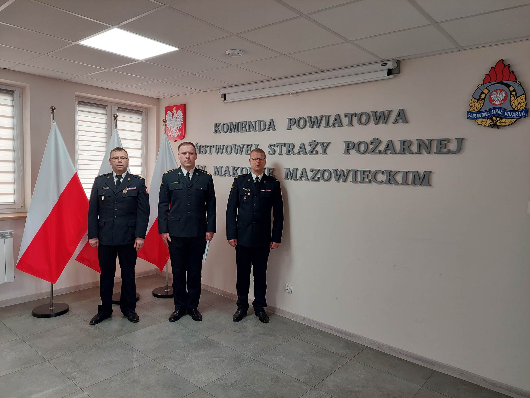 2 maja 2023r. Komendant Powiatowy PSP w Makowie Mazowieckim mł. bryg. Cezary Pałubiński w asyście Dowódcy JRG w Makowie Mazowieckim mł. bryg. Michała Kacprzyckiego dokonali wręczenia nagrody.