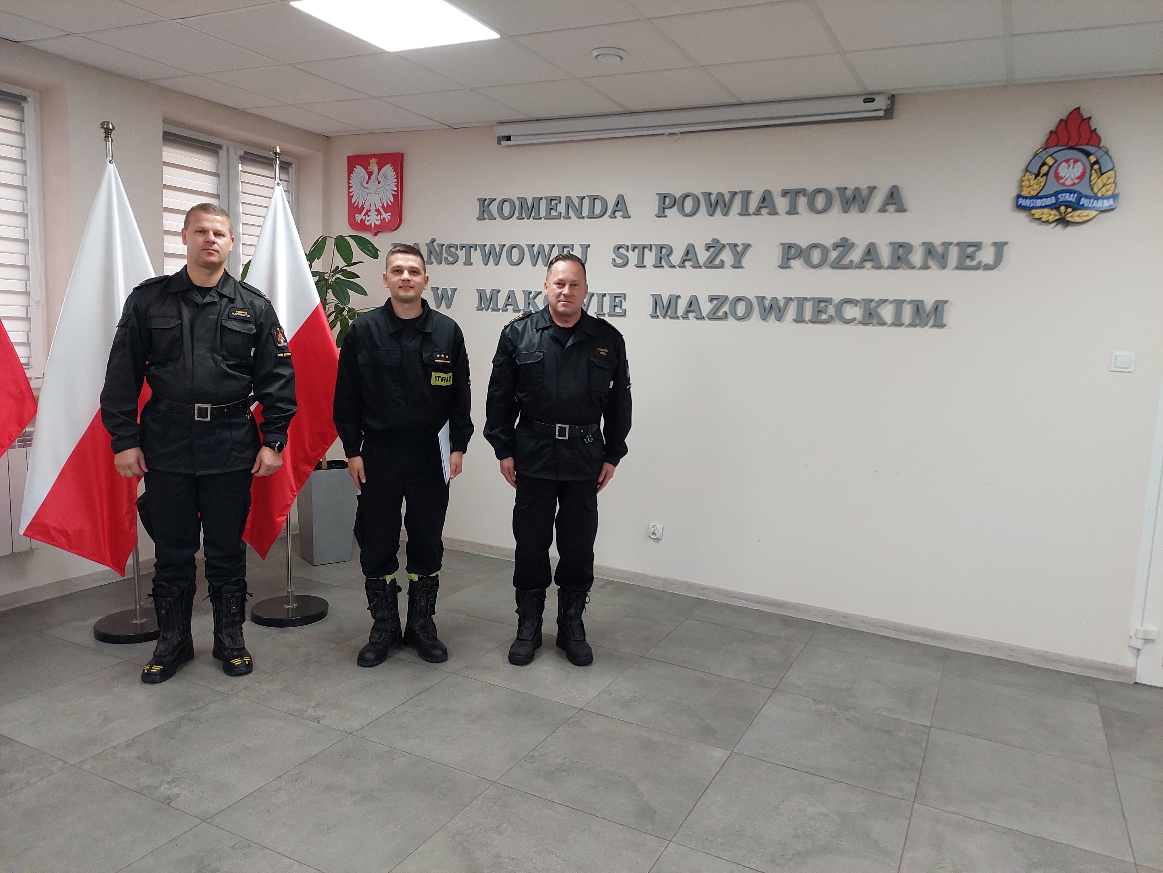 06 października 2022r. Komendant Powiatowy Państwowej Straży Pożarnej w Makowie Mazowieckim st. bryg. Andrzej Król za wzorowe wykonywanie zadań służbowych wyróżniające się efektami dla działania, promocji i rozwoju PSP na szczeblu ponad powiatowym w imieniu Mazowieckiego Komendanta Wojewódzkiego wręczył nagrody niżej wymienionemu strażakowi: