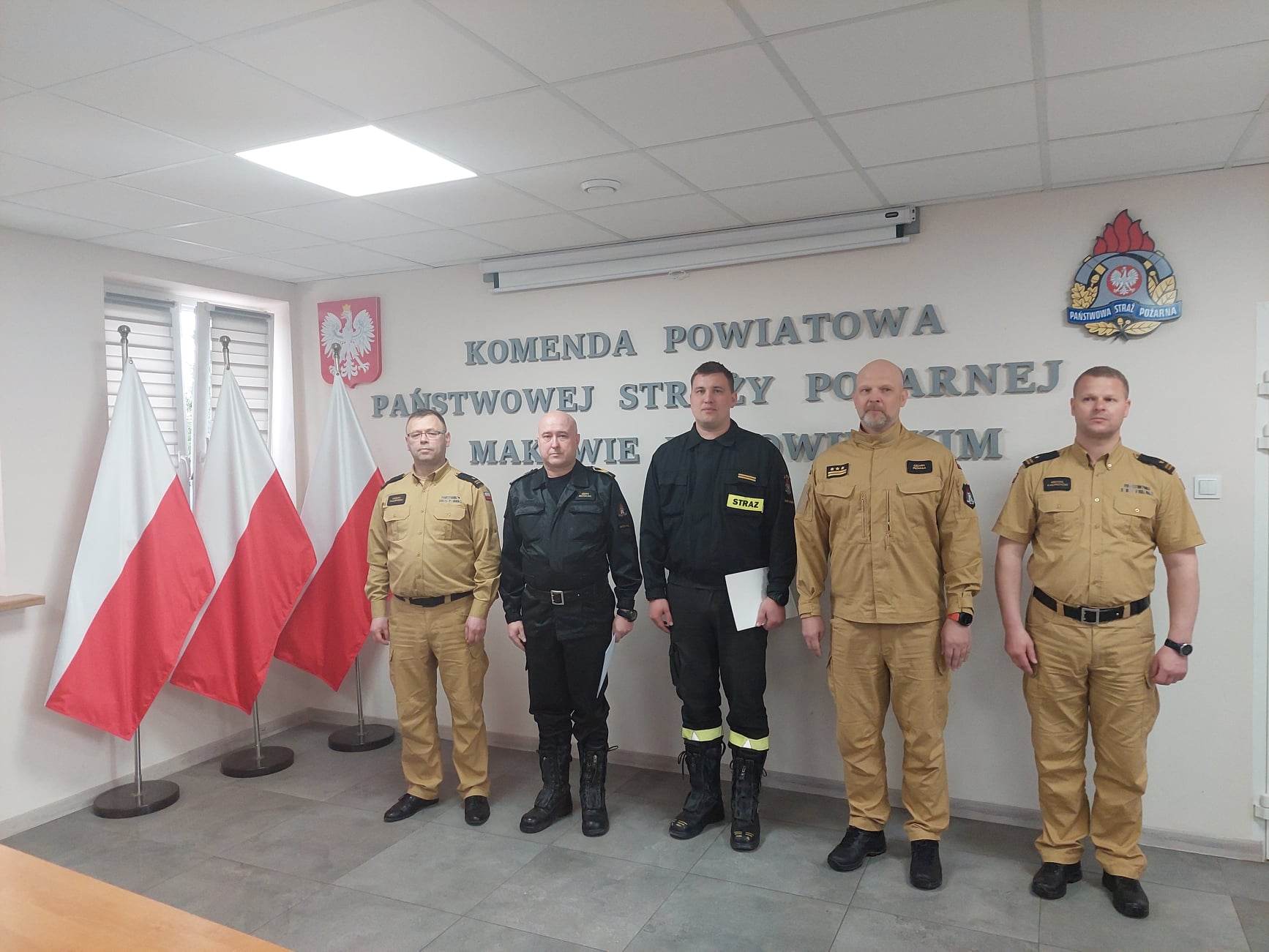 26 kwietnia 2023r. Komendant Powiatowy PSP w Makowie Mazowieckim mł. bryg. Cezary Pałubiński w asyście Zastępcy Komendanta Powiatowego PSP w Makowie Maz. – st. bryg. Cezarego Pichały oraz Dowódcy JRG w Makowie Mazowieckim mł. bryg. Michała Kacprzyckiego dokonali wręczenia nagród.