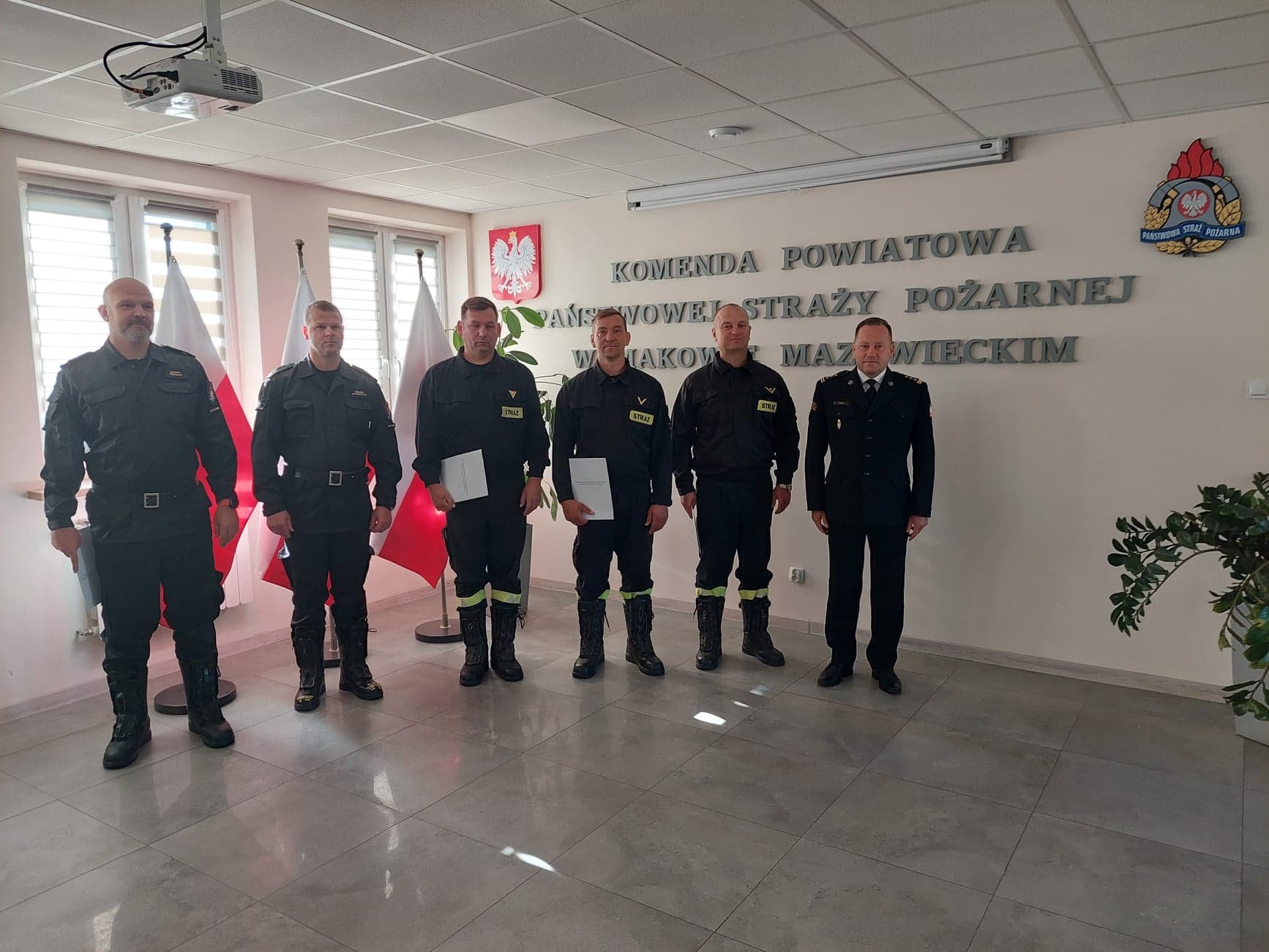 6 września 2022r. Komendant Powiatowy Państwowej Straży Pożarnej w Makowie Mazowieckim st. bryg. Andrzej Król za wzorowe wykonywanie zadań służbowych wyróżniające się efektami dla działania, promocji i rozwoju PSP na szczeblu ponad powiatowym, w tym związanych z realizacją warsztatów z zakresu ratownictwa wodnego organizowanych przez Ośrodek Szkolenia w Warszawie, w imieniu Mazowieckiego Komendanta Wojewódzkiego wręczył nagrody niżej wymienionym strażakom: