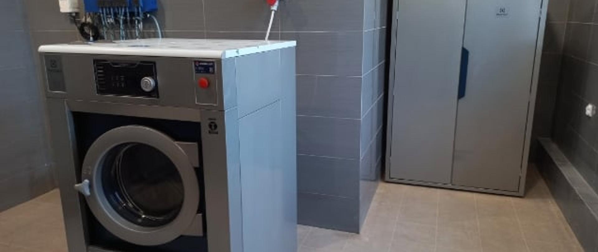 - Pralnicę i suszarkę do odzieży specjalnej. Dzięki nowemu urządzeniu poprawi się bezpieczeństwo ratowników nie tylko ze względu na możliwość usuwania szkodliwych substancji z ubrań specjalnych ale także ich impregnacji. Dezynfekcja ubrań strażaków w pralnicy usuwa z tych ubrań szkodliwe dla zdrowia, również rakotwórcze substancje zawarte w dymie pożarowym.