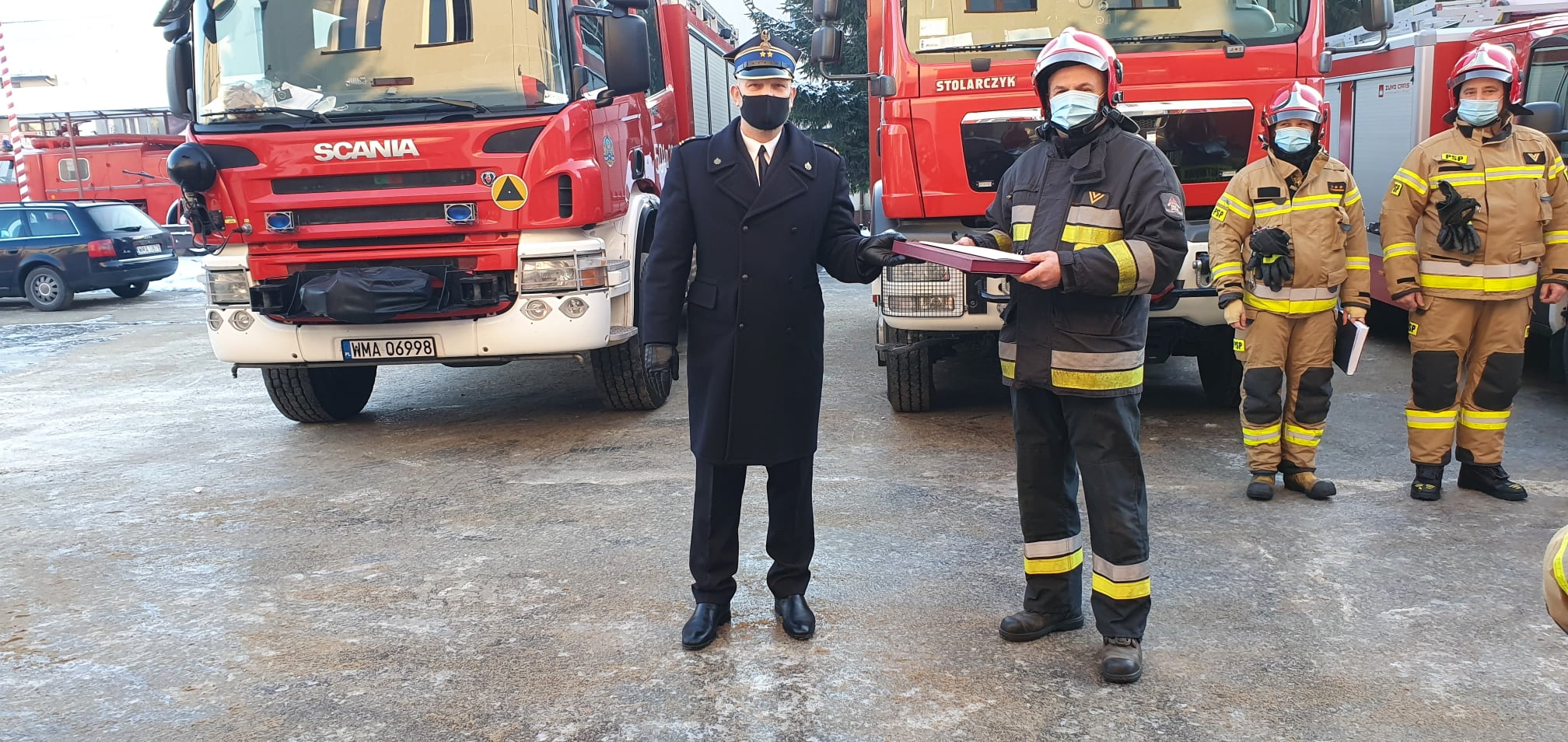Zastępca Komendanta Powiatowego PSP w Makowie Mazowieckim bryg. Cezary Pichała oraz koledzy z JRG i Komendy Powiatowej PSP w Makowie Mazowieckim podziękowali odchodzącemu na zaopatrzenie emerytalne koledze za wzorową i nienaganną służbę oraz życzyli zdrowia i wszelkiej pomyślności w życiu osobistym.