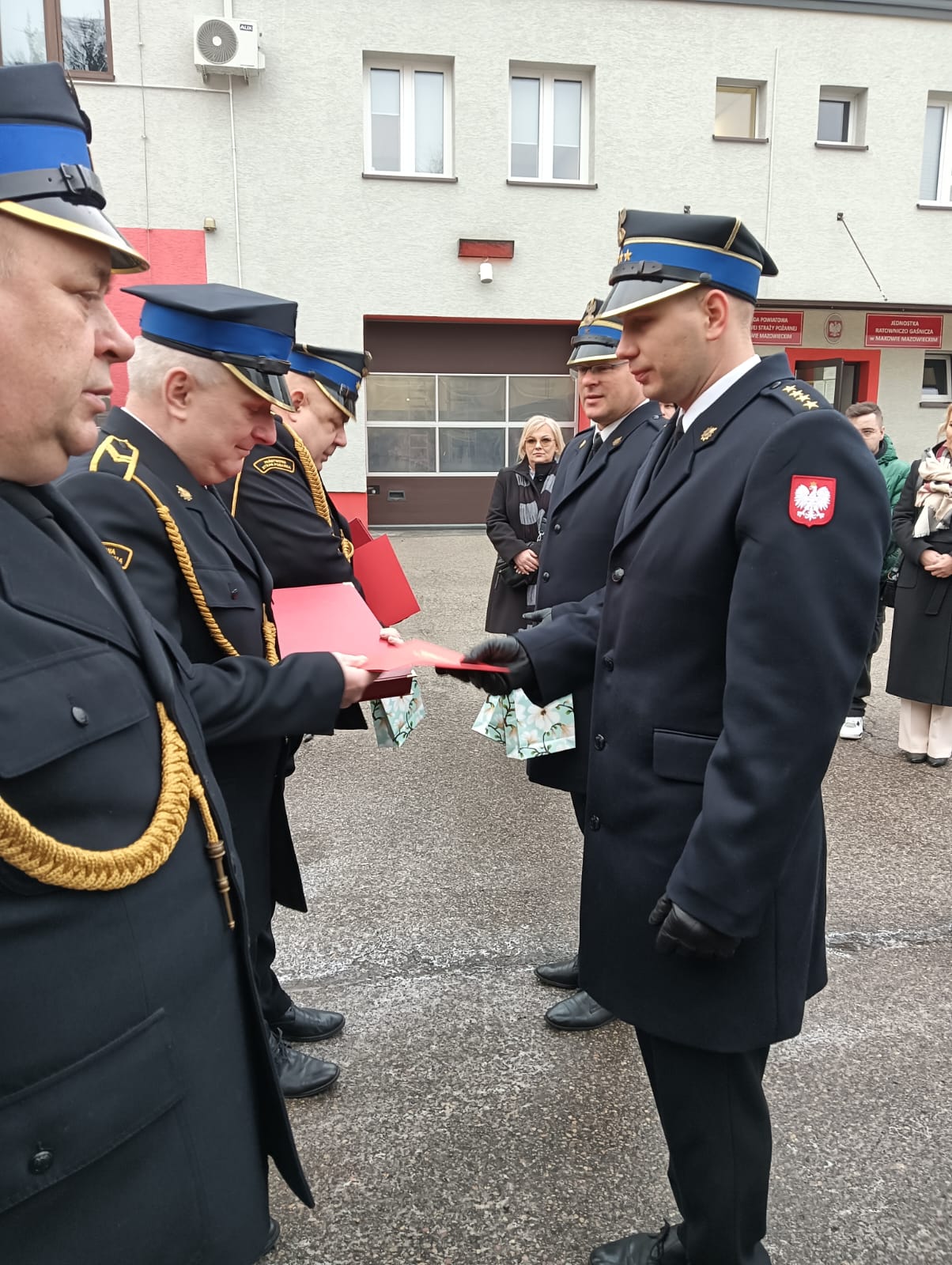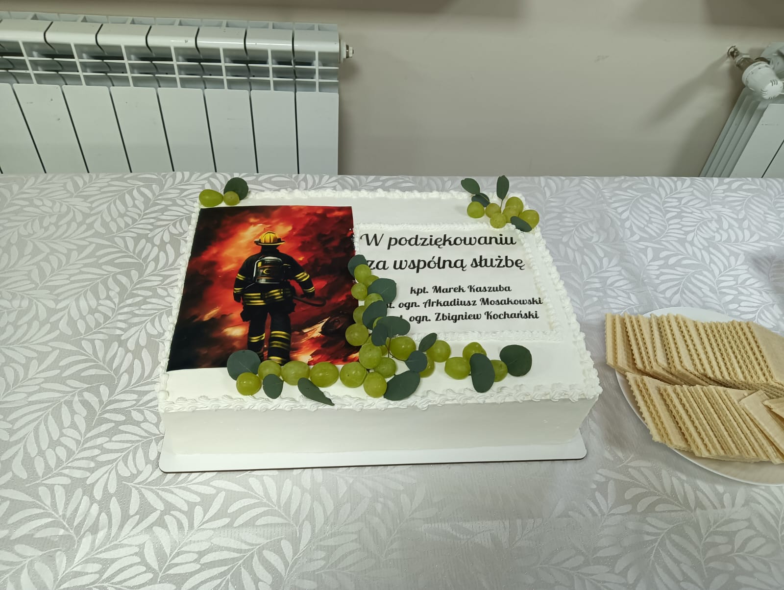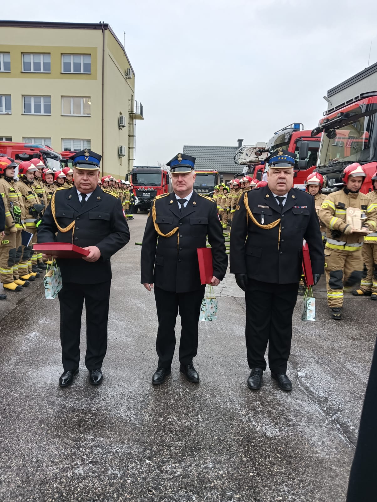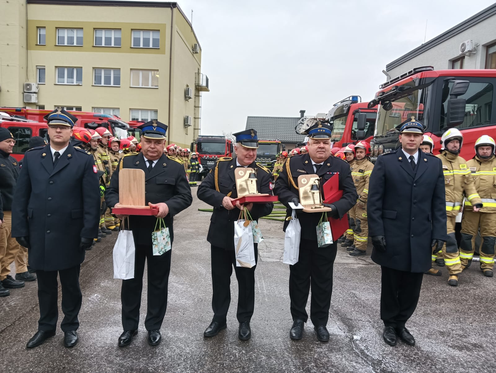 Pożegnanie ze służbą trzech funkcjonariuszy: kpt. Marek Kaszuba, st. ogn. Zbigniew Kochański, st. ogn. Arkadiusz Mosakowski