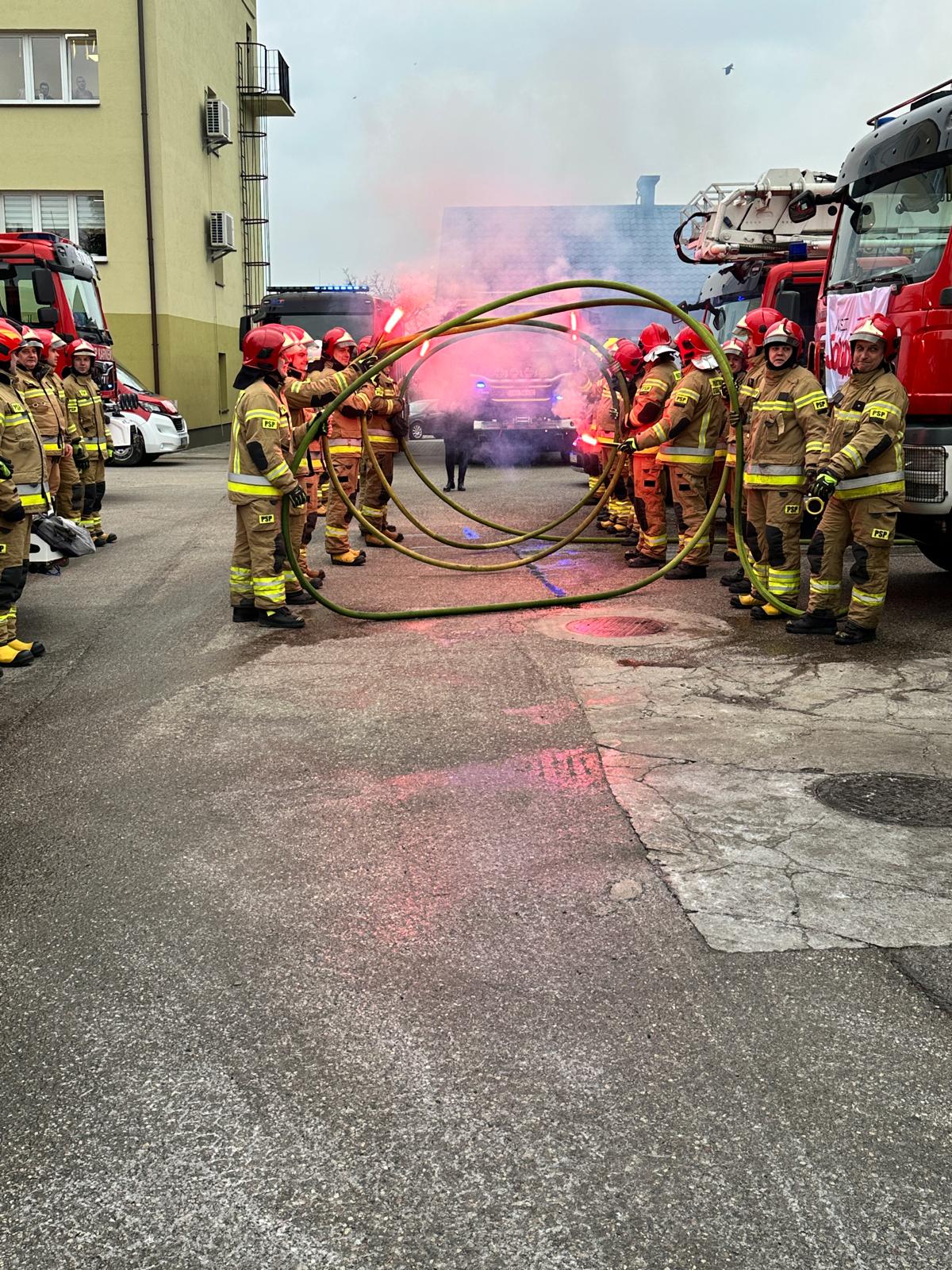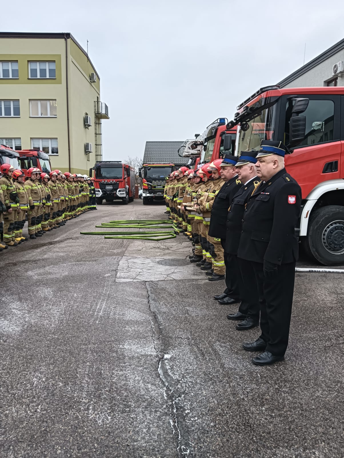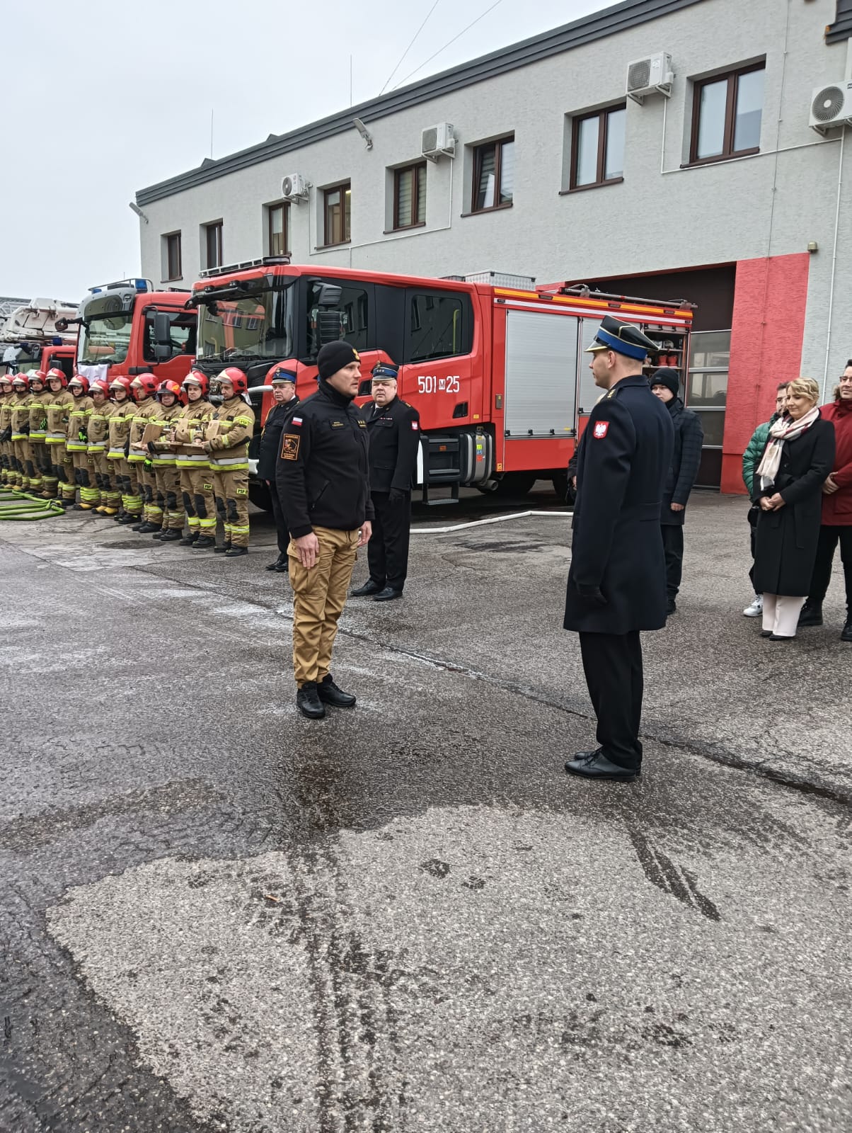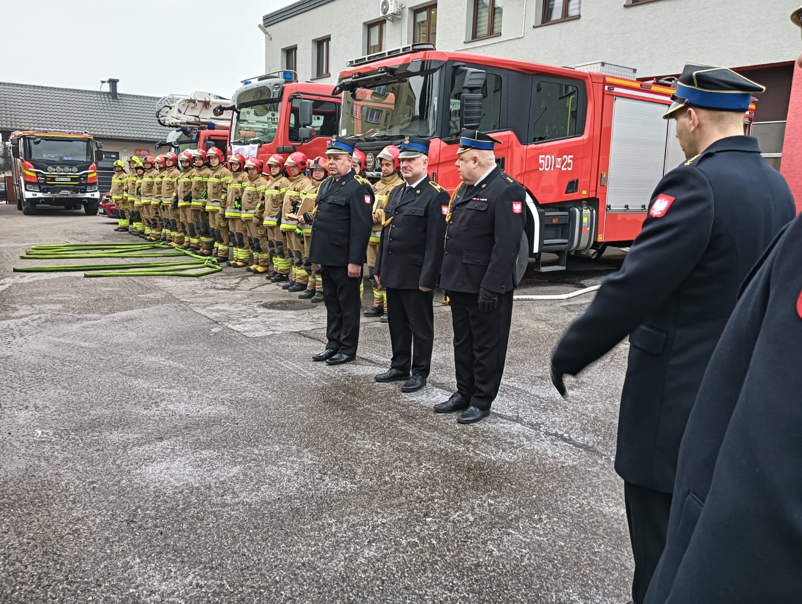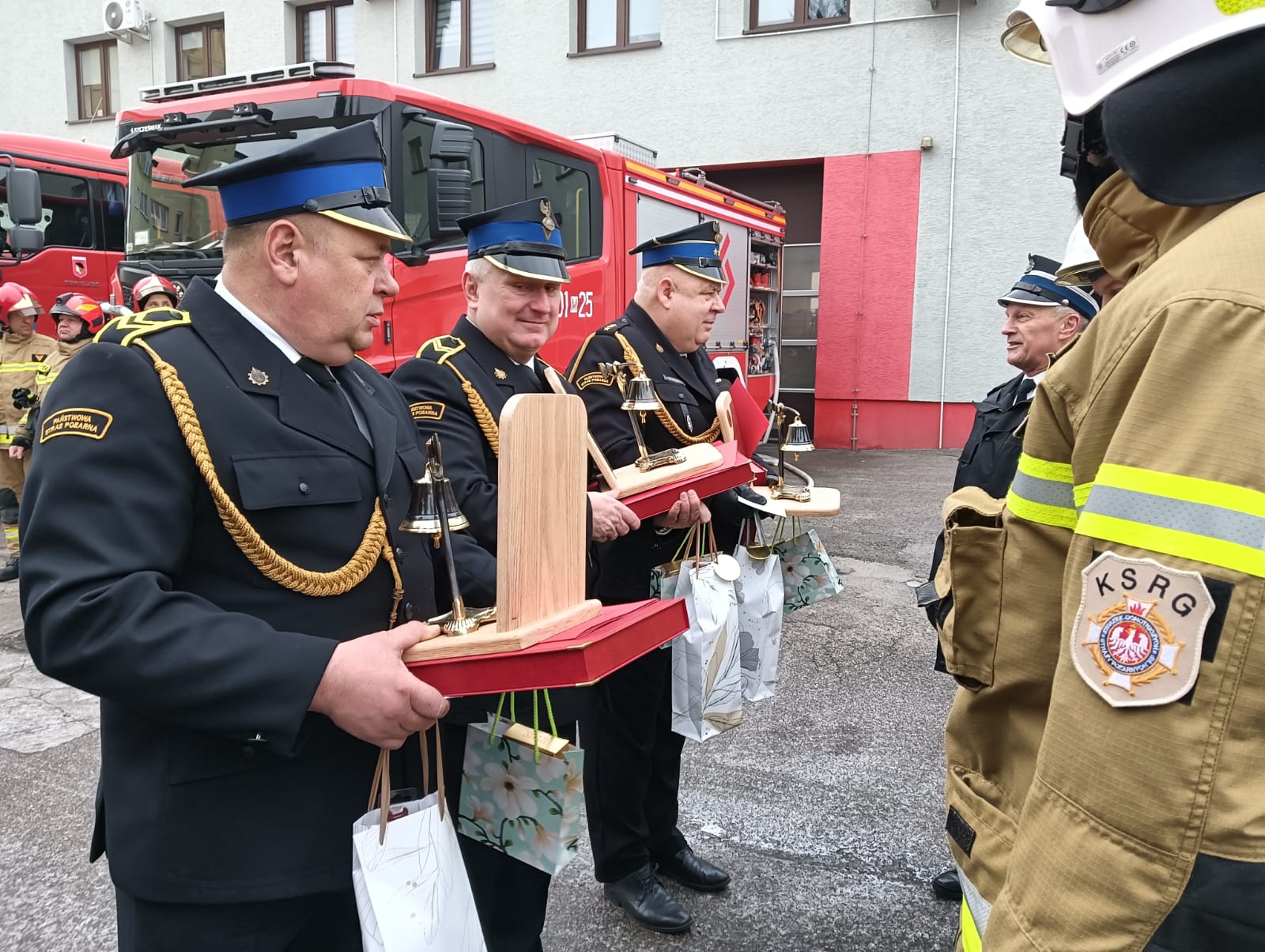 Pożegnanie ze służbą trzech funkcjonariuszy: kpt. Marek Kaszuba, st. ogn. Zbigniew Kochański, st. ogn. Arkadiusz Mosakowski