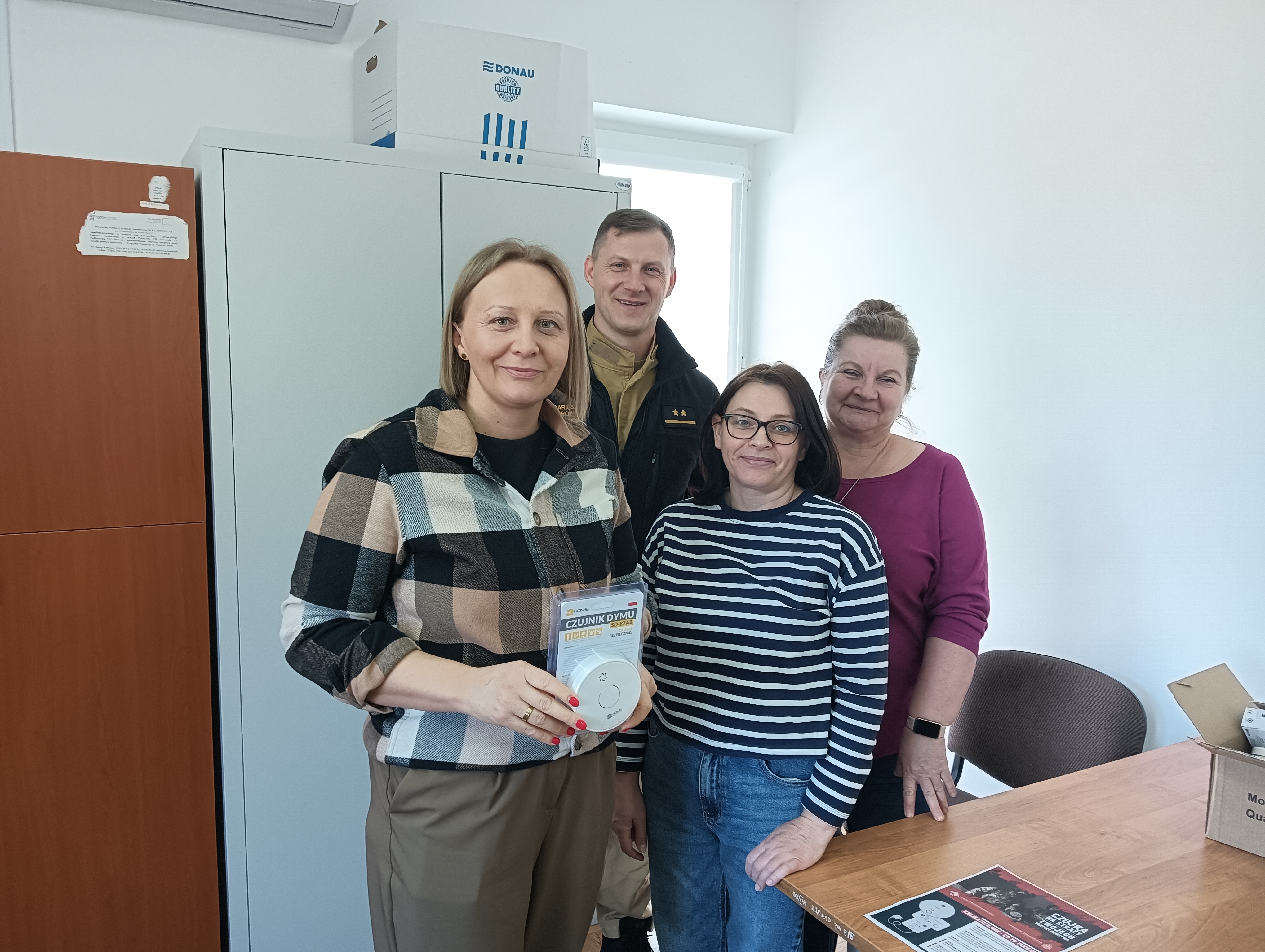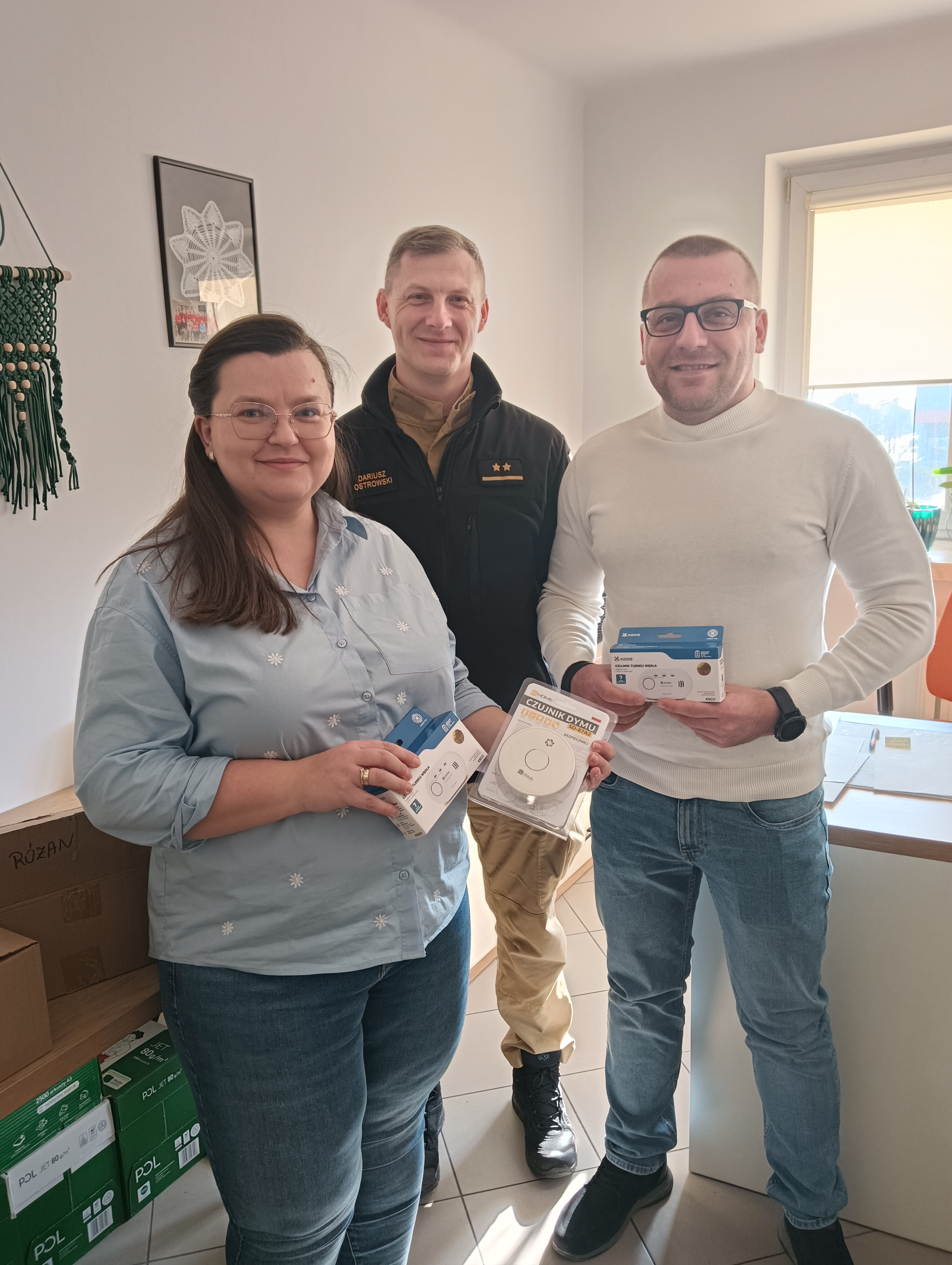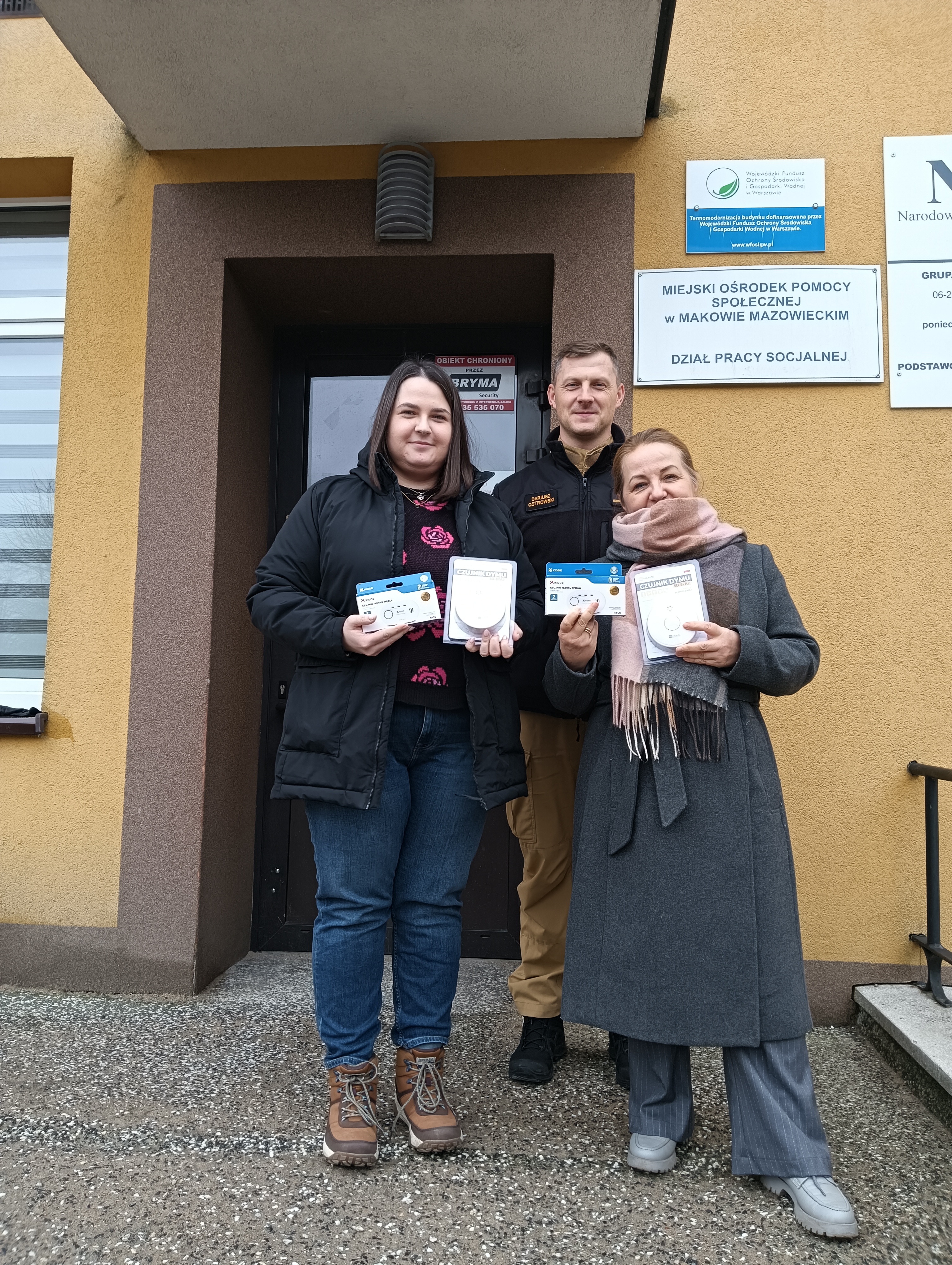 W dniu 26.02.2026 r. funkcjonariusze z Komendy Powiatowej Państwowej Straży Pożarnej w Makowie Mazowieckim odwiedzili MOPS i GOPS z terenu powiatu makowskiego, podczas spotkania przekazali automatyczne czujki dymu i tlenku węgla w ramach dystrybucji lokalnej społeczności.