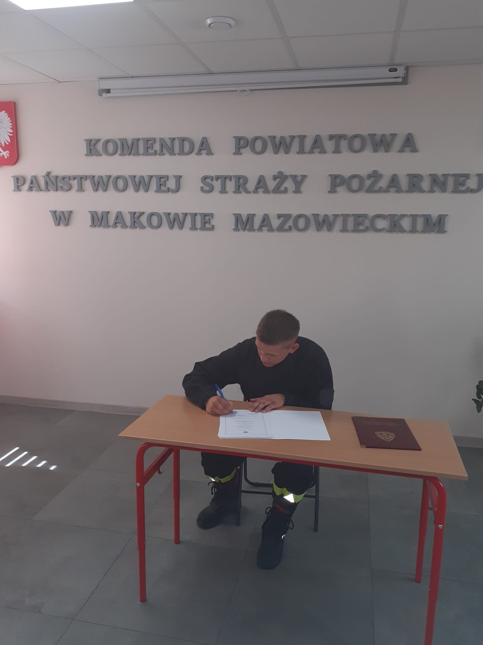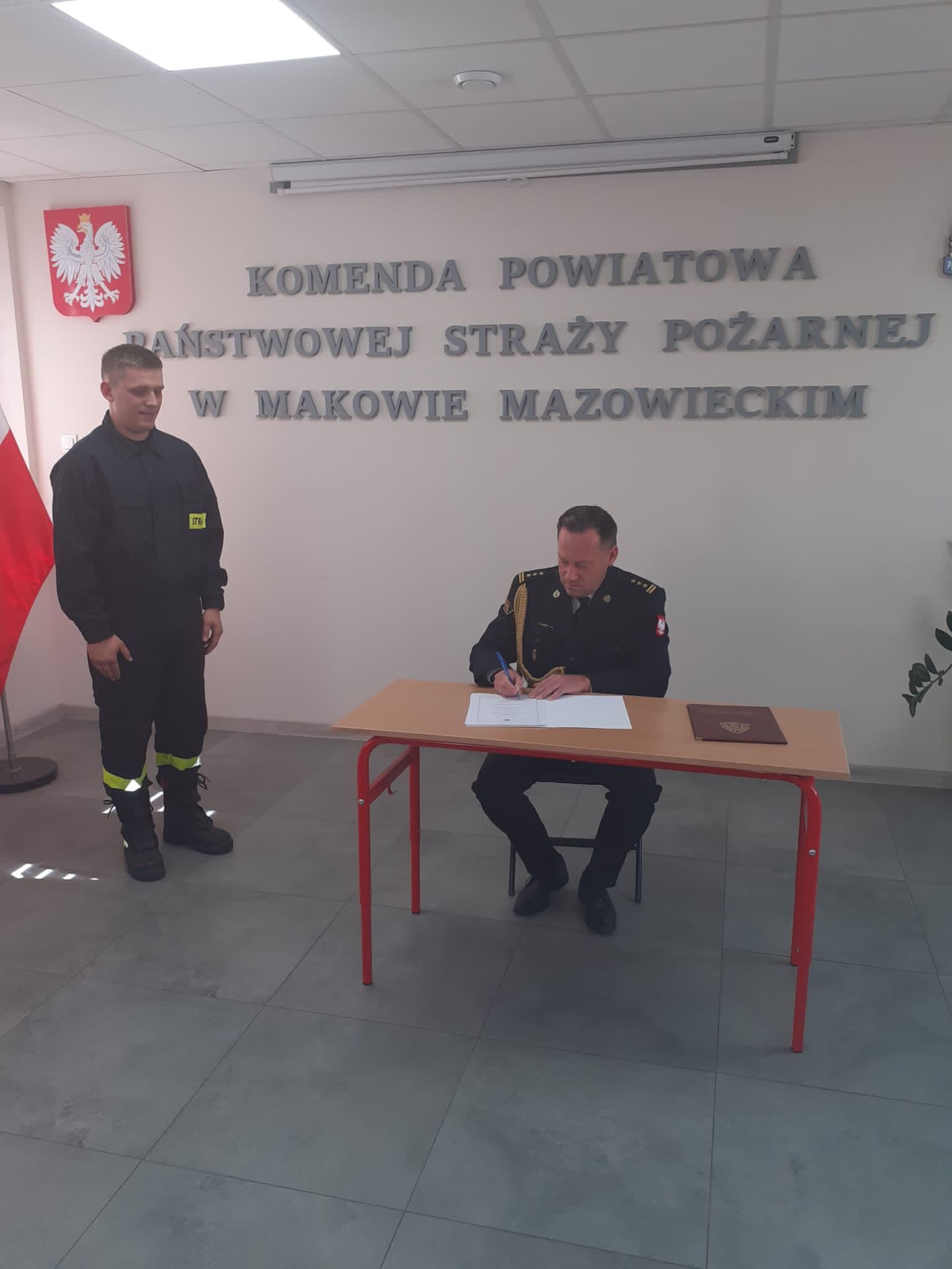 Nowy funkcjonariusz został mianowany na stanowisko stażysty w Komendzie Powiatowej PSP w Makowie Mazowieckim.