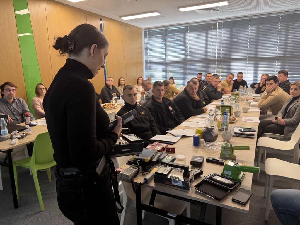 Uczestnicy szkolenia wzięli udział w cyklu wykładów wprowadzających do tematu ochrony radiologicznej. Specjaliści z ZUOP mówili o dawkach i jednostkach związanych z promieniotwórczością. Zapoznali uczestników z zasadami wykrywania promieniowania jonizującego oraz urządzeniami, które wykorzystuje się do tego celu.