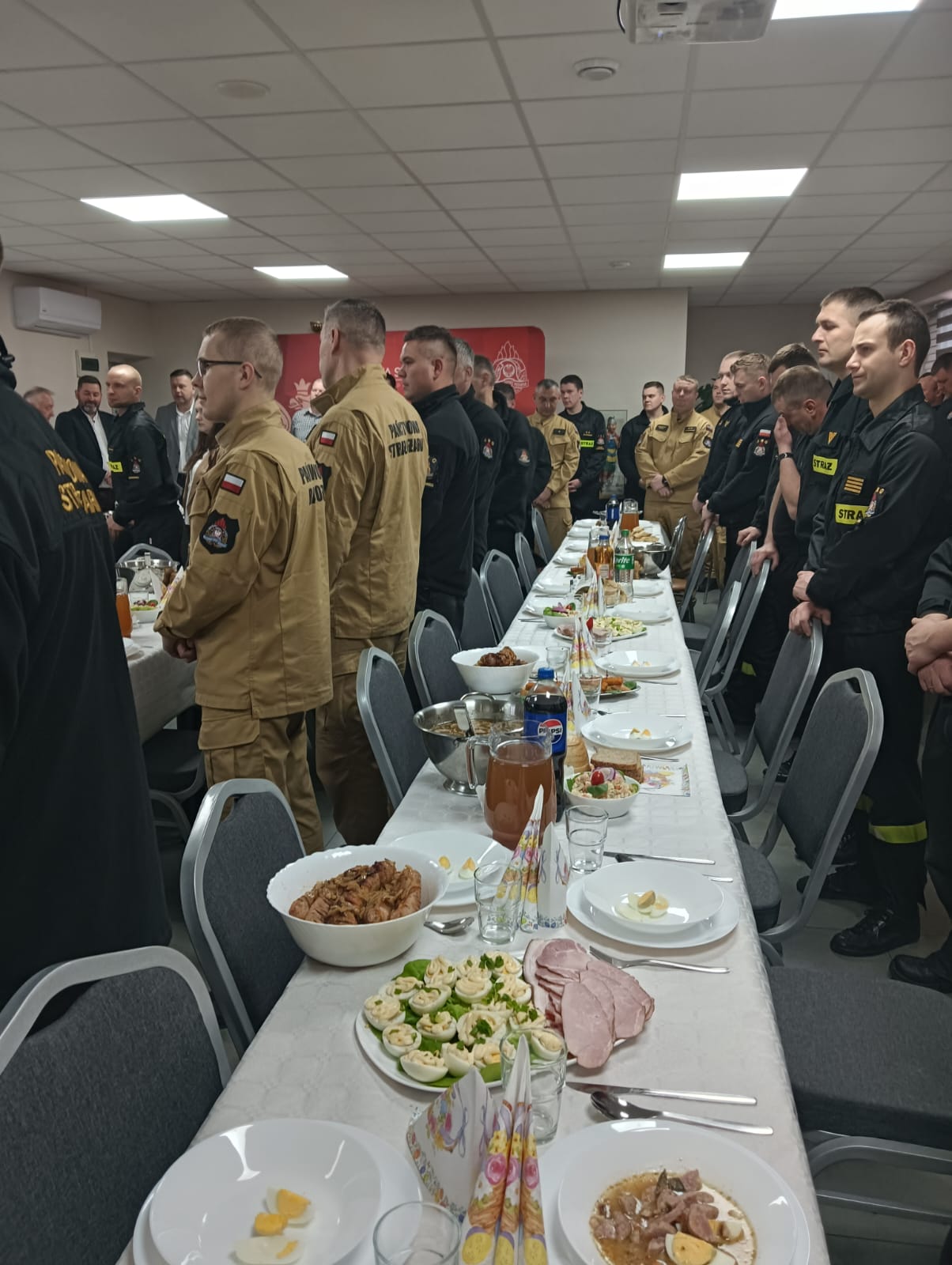 16 kwietnia 2025 r. w Komendzie Powiatowej Państwowej Straży Pożarnej w Makowie Mazowieckim odbyło się spotkanie z okazji zbliżających się świąt Wielkanocnych. Gośćmi spotkania byli: ks. kan. Stanisław Dziekan proboszcz parafii pw. św. Józefa – kapelan makowskich strażaków, Wicestarosta wraz z Przewodniczącym Rady Powiatu, Radny Powiatowy, Burmistrzowie, Wójtowie gmin powiatu makowskiego, Komendant Powiatowy Policji, byli Komendanci Powiatowi PSP, przedstawiciele Koła Emerytów PSP, przedstawiciele Koła Terenowego Polskiego Związku Niewidomych.