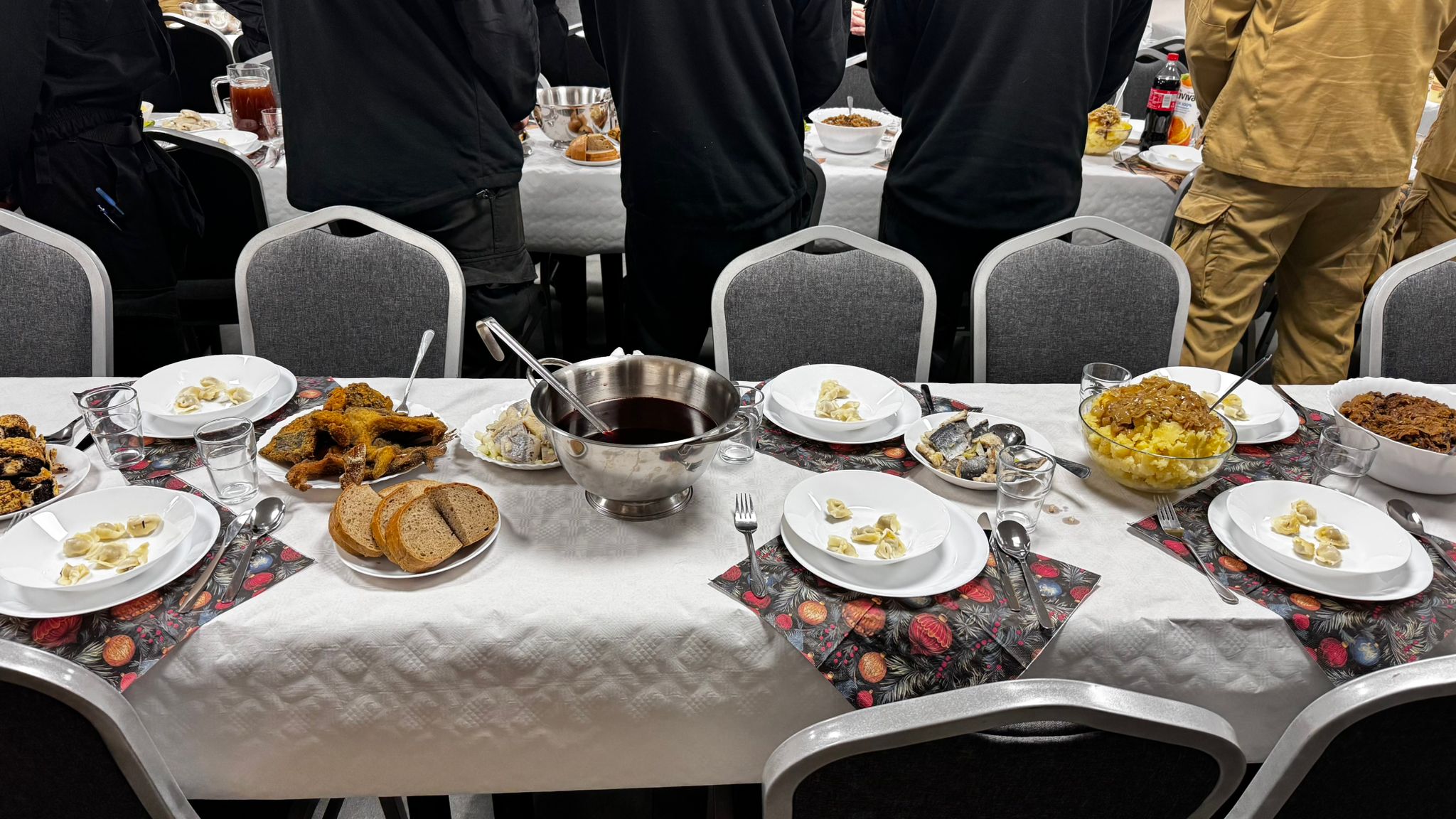 Na wstępie głos zabrał Komendant Powiatowy PSP w Makowie Mazowieckim st. kpt. Bartosz Kołodziejski, który przywitał przybyłych gości którzy zaszczycili nas swoją obecnością, krótko podsumował mijający rok oraz życzył wszystkim zebranym oraz ich rodzinom zdrowych, radosnych, spokojnych Świąt Bożego Narodzenia, spędzonych w ciepłej, rodzinnej atmosferze. W imieniu przybyłych gości głos zabrał Starosta Powiatowy Mirosław Augustyniak który przyłączył się do życzeń. Ks. Dziekan wygłosił Słowo Boże, następnie odśpiewano wspólnie kolędę. Wszyscy obecni podzielili się opłatkiem oraz złożyli sobie najszczersze życzenia i wspólnie zasiedli do wigilijnego posiłku, który został przygotowany przez makowskich strażaków.