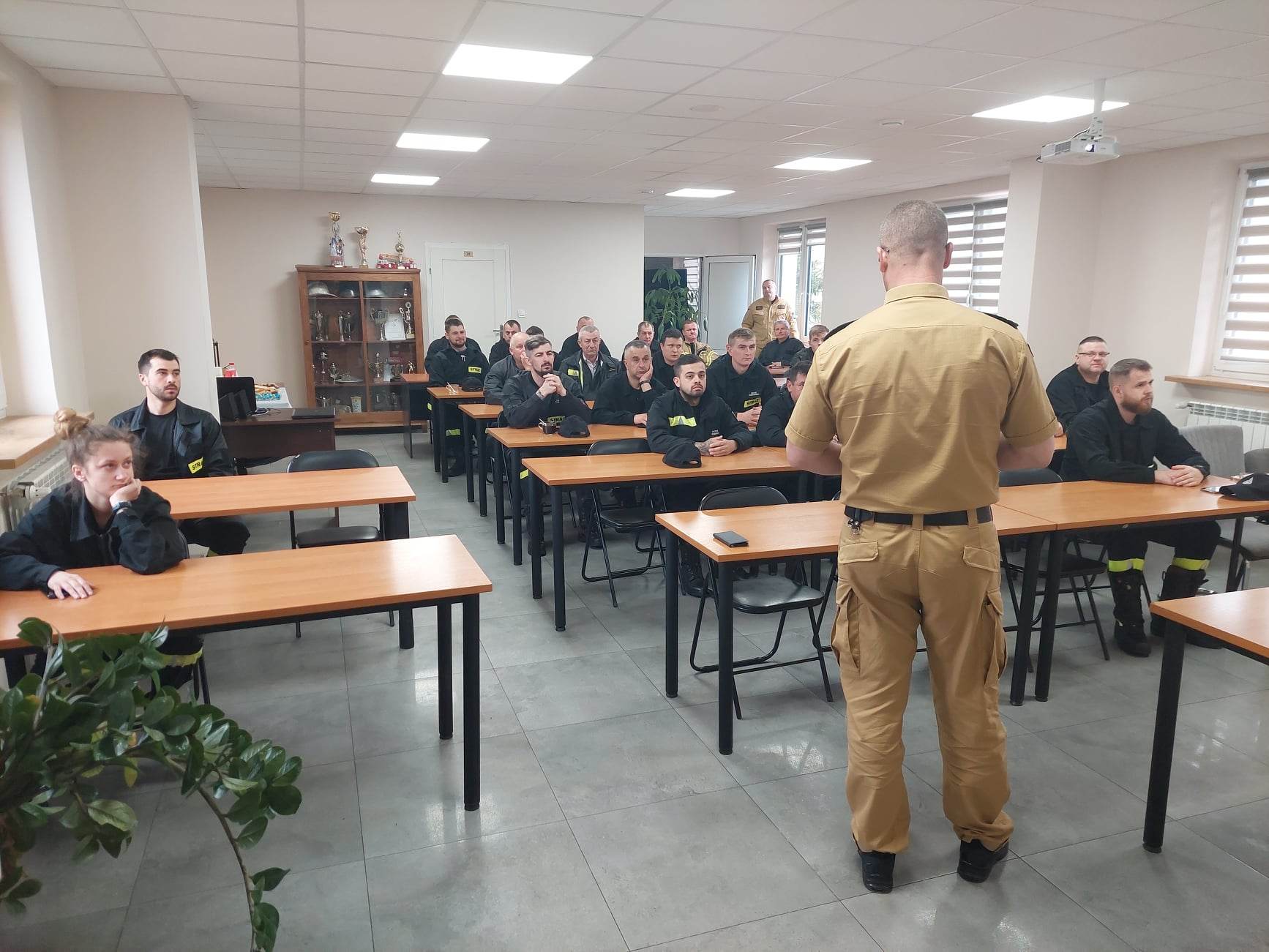25 kwietnia 2023r. w siedzibie Komendy Powiatowej Straży Pożarnej w Makowie Mazowieckim strażacy z jednostek OSP w KSRG z terenu powiatu makowskiego odbyli szkolenie w zakresie postępowania przy zdarzeniach z udziałem samochodów elektrycznych i hybrydowych.