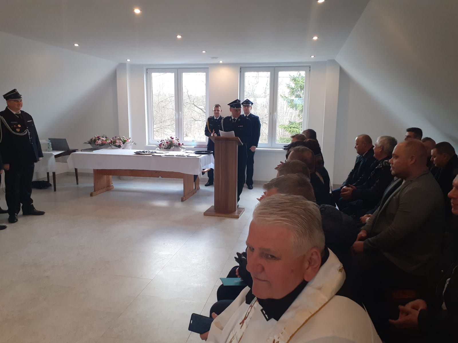 Zaproszeni goście gratulowali jednostce zakupu nowego samochodu oraz podkreślali profesjonalizm i ciągłą gotowość strażaków do niesienia pomocy na terenie gminy i powiatu. W uroczystości wzięli udział zaproszeni goście, w tym m.in. Pani Anna Ingatowicz – Zastępca dyrektora Mazowieckiego Oddziału regionalnego ARiMR, Pan Mirosław Augustyniak – Radny Sejmiku Mazowieckiego i Wiceprezes Zarządu Oddziału Wojewódzkiego ZOSP RP, Pan Zbigniew Deptuła – Starosta Makowski i Prezes Zarządu Oddziału Powiatowego ZOSP RP w Makowie Mazowieckim, Adam Rupiński – Wójt Gminy Młynarze, bryg. Cezary Pałubiński – Komendant Powiatowy PSP w Makowie Mazowieckim, ks. Słaromir Mańkowski, Radni Gminy Młynarze z przewodniczącym Łukaszem Suskim, przedstawiciele Policji, innych służb i instytucji.