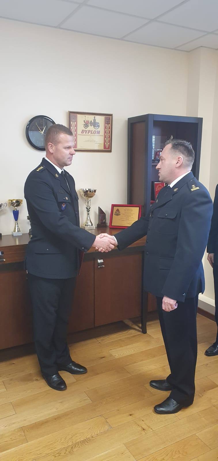Podczas uroczystości funkcjonariusz tut. Komendy asp. Jarosław Janiszewski otrzymał Brązową Odznakę „Zasłużony dla Ochrony Przeciwpożarowej” z rąk wiceministra spraw wewnętrznych i administracji Macieja Wąsika, komendanta głównego PSP nadbryg. Andrzeja Bartkowiaka oraz mazowieckiego komendanta wojewódzkiego PSP st. bryg. Jarosława Nowosielskiego.