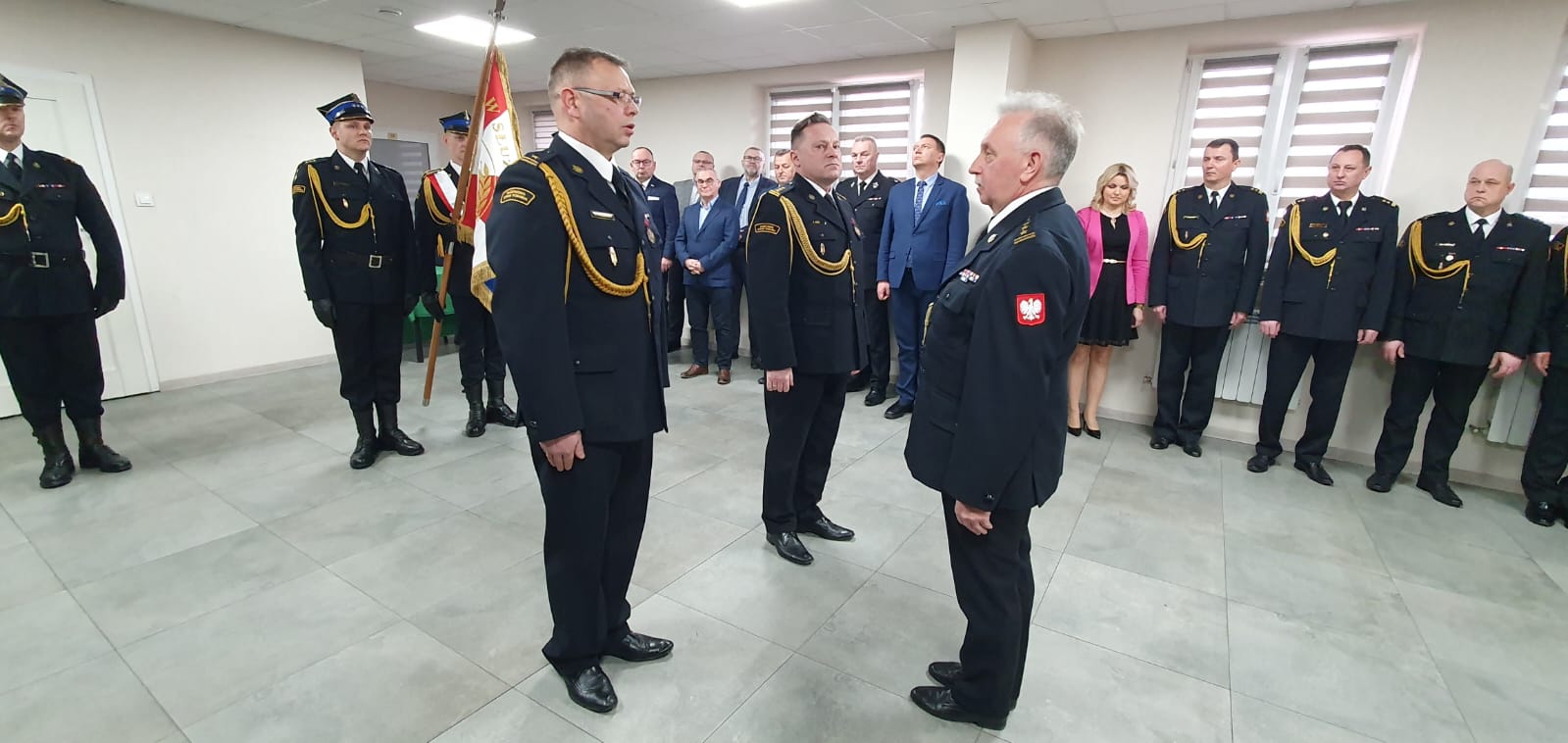 Podczas uroczystego apelu, Komendant Wojewódzki Państwowej Straży Pożarnej st. bryg. Jarosław Piotrowski serdecznie podziękował Komendantowi za prawie 30 lat służby na rzecz polskiego pożarnictwa i ochrony przeciwpożarowej. W swoim wystąpieniu wspomniał także o bardzo dobrej współpracy z jednostkami OSP oraz jednostkami samorządu terytorialnego.