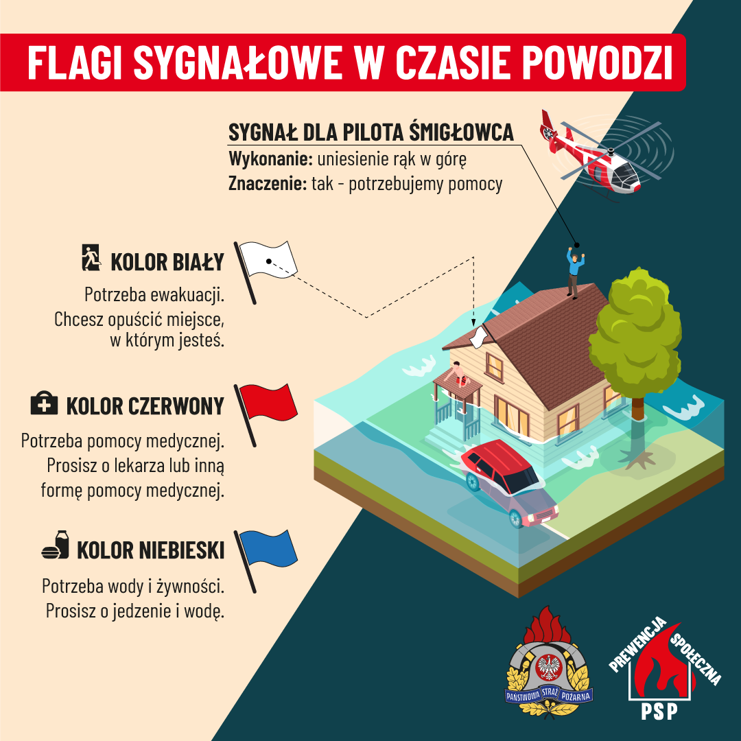 Wymachując w czasie powodzi kolorową flagą lub kawałkiem materiału, możesz prosić o pomoc