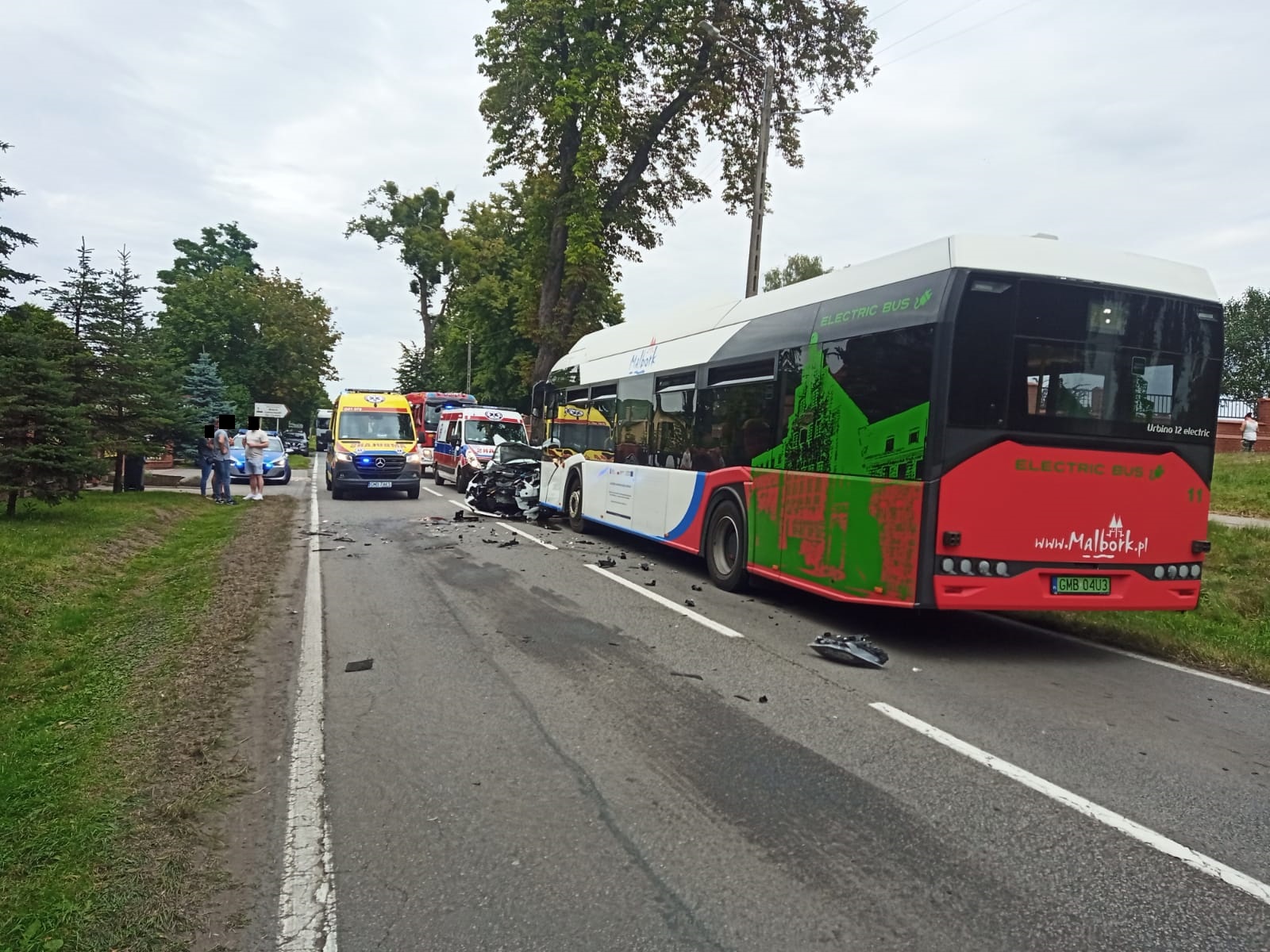 W dniu 08.08.2022r. o godz. 15:08 dyżurny operacyjny stanowiska kierowania komendanta powiatowego PSP w Malborku, przyjął zgłoszenie o wypadku samochodu osobowego z autobusem.