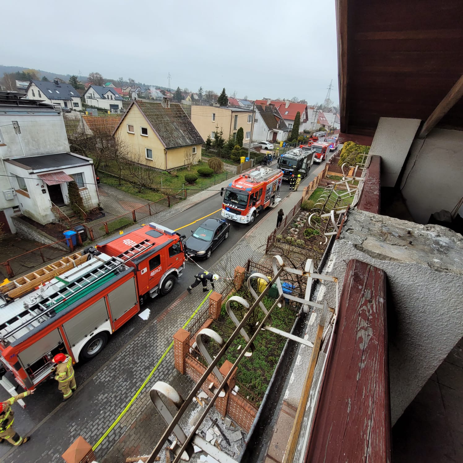 Działania strażaków polegały na: zabezpieczeniu miejsca zdarzenia, odłączeniu energii elektrycznej oraz gazu, wyniesieniu dwóch butli propan-butan 11kg. na zewnątrz budynku, podaniu prądów wody na palącą się konstrukcję dachu, wprowadzeniu kolejnego prądu wody od wewnątrz na palące się poddasze, wykonaniu otworów rewizyjnych w celu znalezienia zarzewi ognia oraz wygaszeniu paleniska w piecu CO, pracach rozbiórkowych, kontroli kamerą termowizyjną, ugaszeniu pożaru, przewietrzeniu pomieszczeń za pomocą wentylatora, sprawdzeniu obecności tlenku węgla.