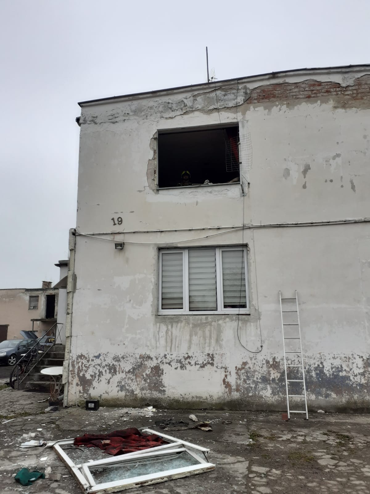 Po dojeździe 4 zastępów z JRG Malbork oraz zastępu OSP Stogi zastano budynek wielorodzinny o konstrukcji murowanej po wybuchu gazu na pierwszym piętrze. Dwie osoby opuściły budynek przed przybyciem straży pożarnej, natomiast jedna osoba poszkodowana znajdowała się na piętrze budynku, w którym doszło do wybuchu. W wyniku wybuchu uszkodzone zostało okno i ściany budynku.