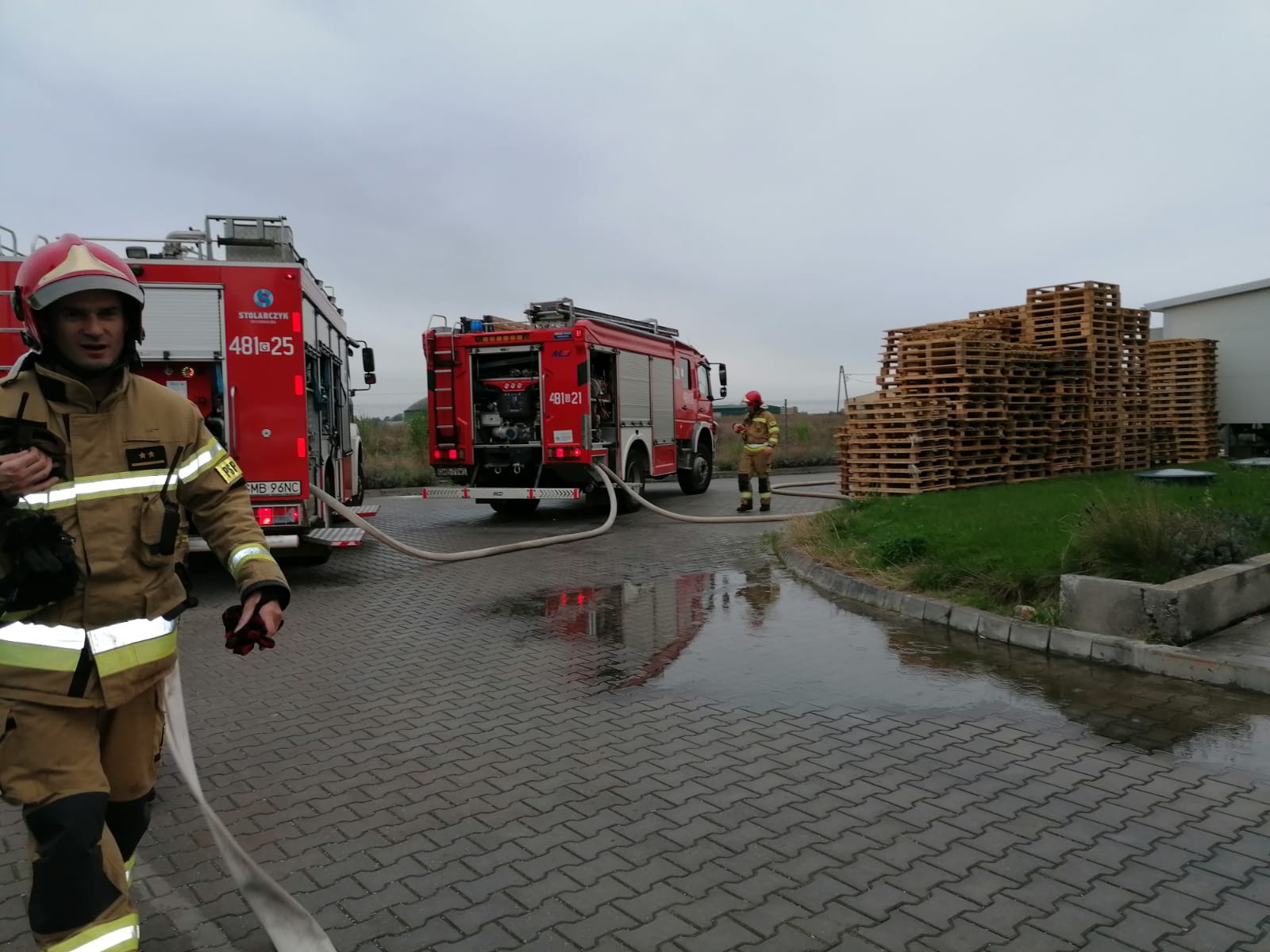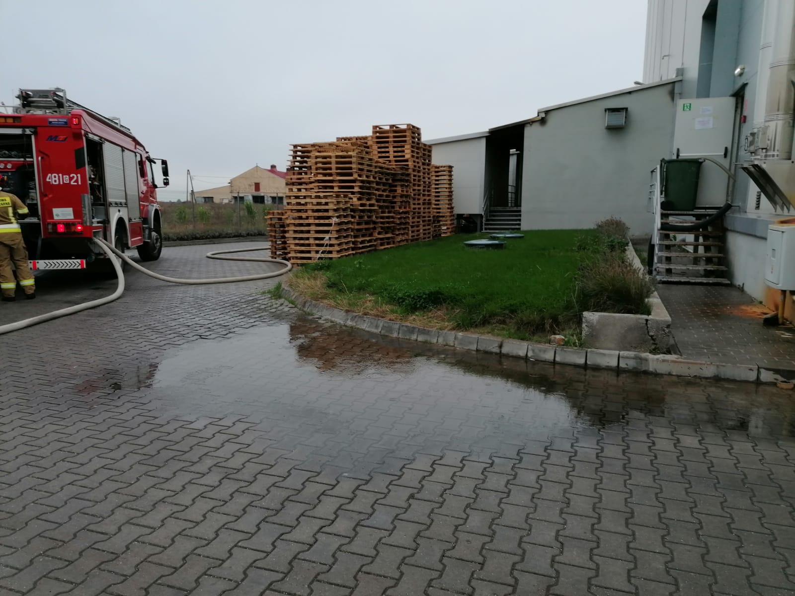 Po dojeździe do miejsca zdarzenia kierujący działaniami ratowniczymi stwierdził pożar pomieszczenia technicznego przyległego do hali produkcyjno-magazynowej. Pożarem objęty był agregat prądotwórczy o mocy 1,4 MW. Pracownicy opuścili halę zakładu przed przybyciem JOP.