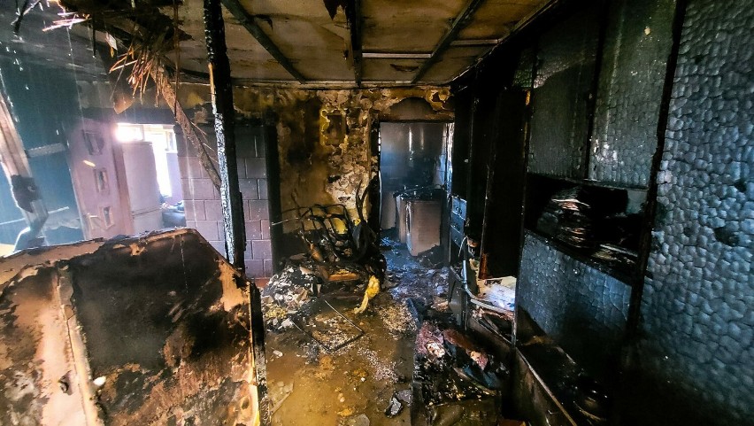 Działania strażaków polegały na – zabezpieczeniu miejsca zdarzenia, podaniu dwóch prądów wody na palący się obiekt oraz przeszukaniu lokali mieszkalnych. W wyniku przeszukania odnaleziono dwie osoby poszkodowane, którą ewakuowano na zewnątrz obiektu oraz przekazano dla ZRM, który stwierdził zgon u jedenej z osób, a druga została przetransportowana do szpitala z wykorzystaiem LPR. Dalsze działania prowadzone były pod kątem wykluczenia innych osób wewnątrz obiektu oraz ugaszeniem pożaru.