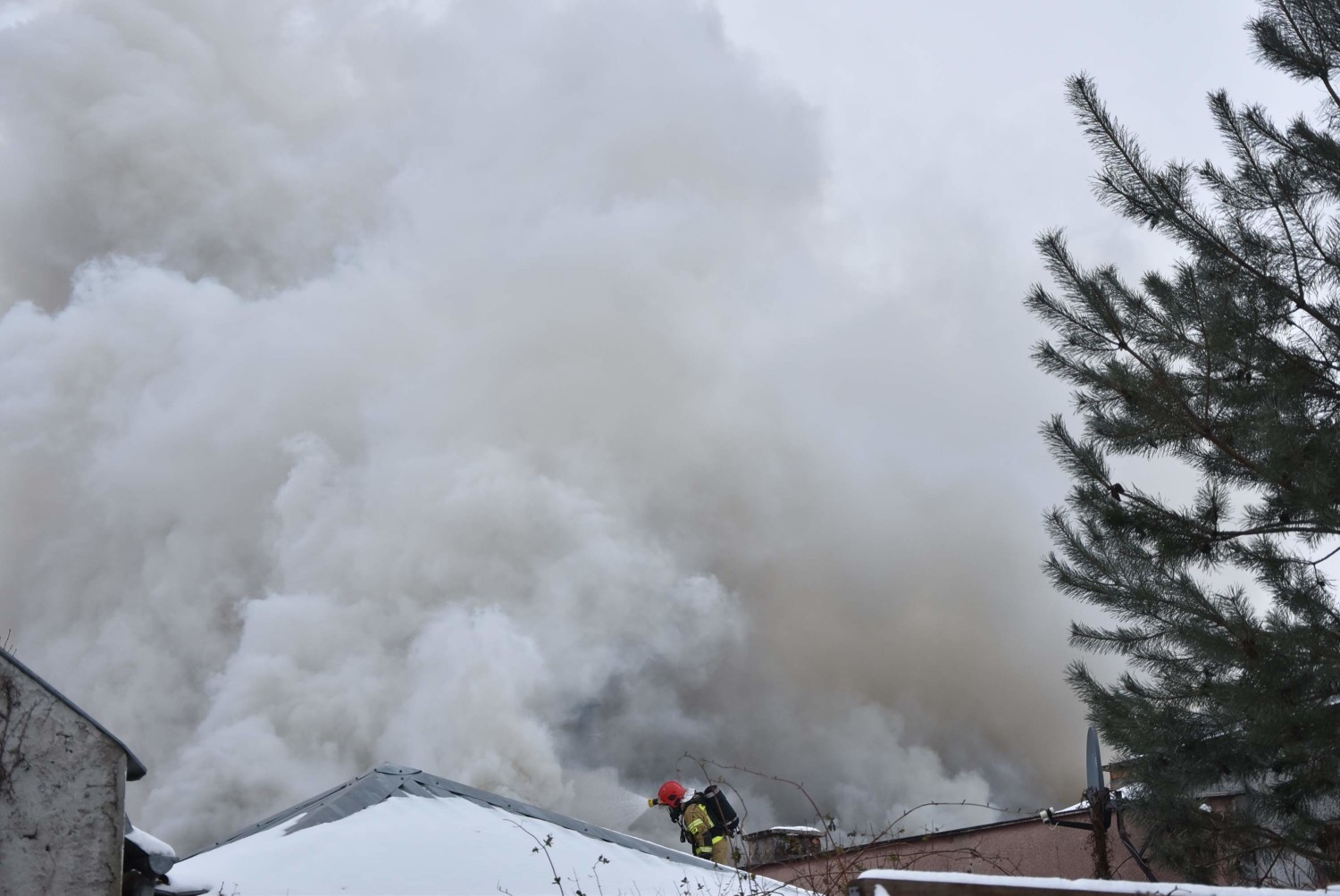 Zadysponowano łącznie 15 zastępów straży pożarnej. Po dojeździe do miejsca zdarzenia kierujący działaniem ratowniczym stwierdził w części magazynowej lokalu gastronomicznego. Budynek niski o konstrukcji murowanej, dach drewniany kryty papą i blachą trapezową. Część magazynowa (objęta pożarem) była połączona ze ścianą zewnętrzną zaplecza restauracyjnego. Cztery osoby opuściły budynek przed przybyciem JOP. Brak osób poszkodowanych.