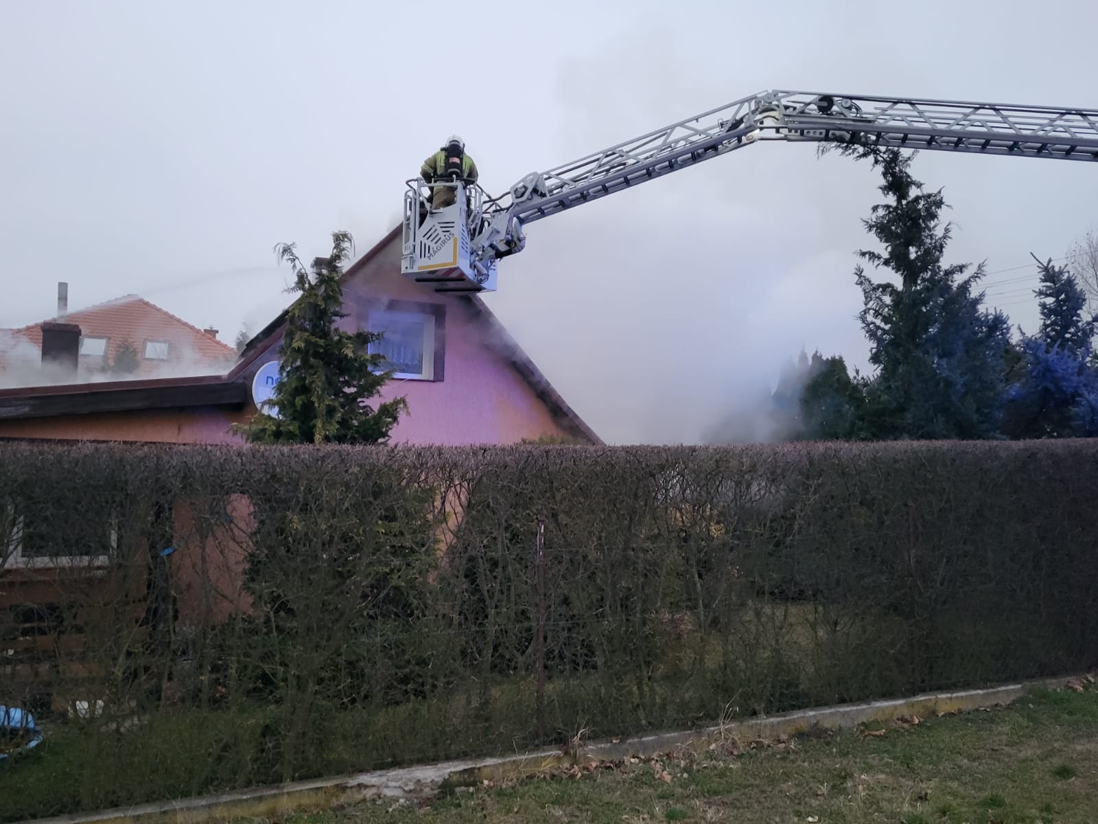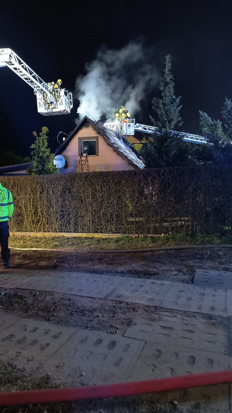 Po dojeździe do miejsca zdarzenia zastano wydobywający się dym pod powierzchnią dachu. Dwie osoby opuściły budynek przed przybyciem straży pożarnej.