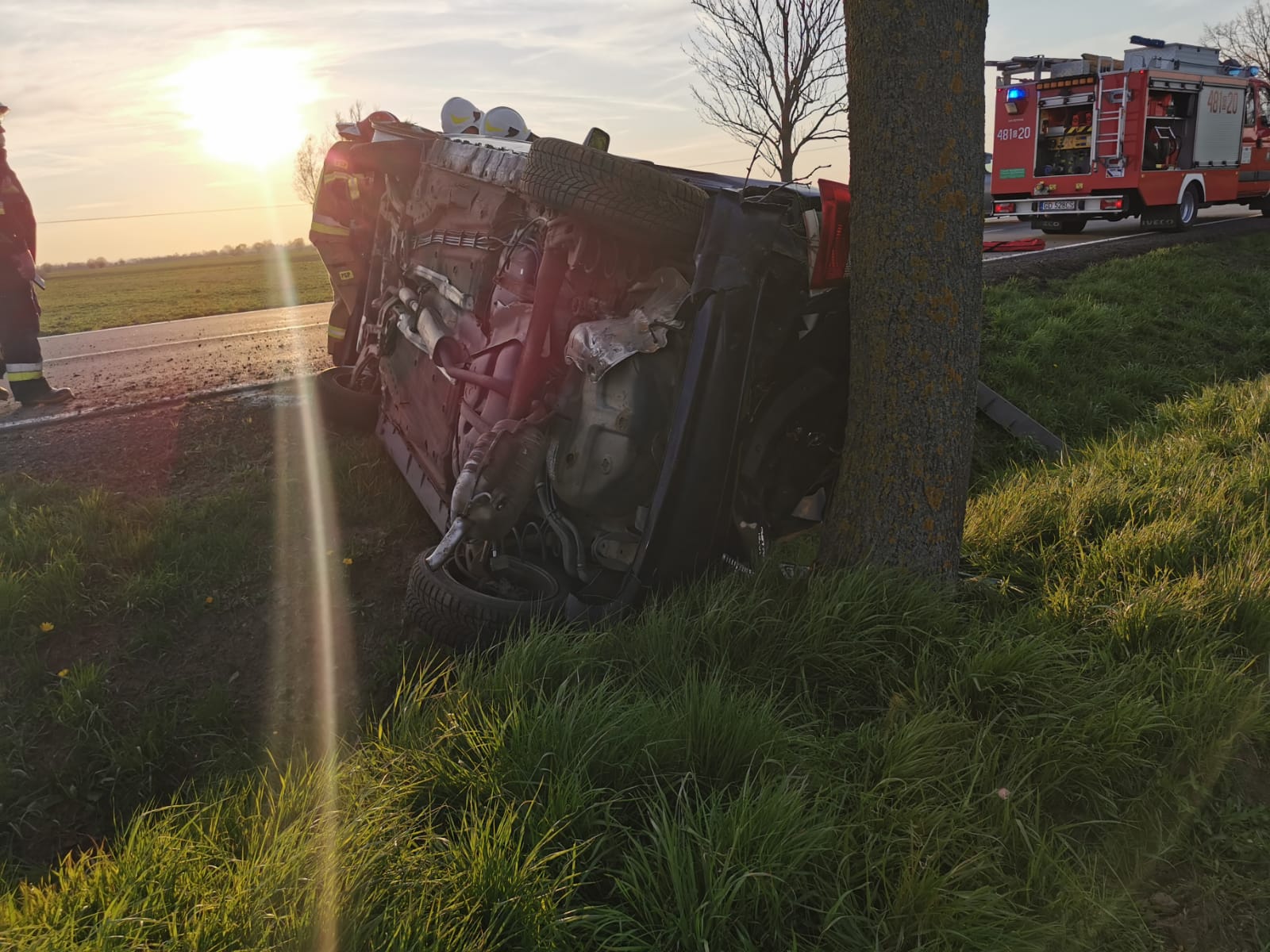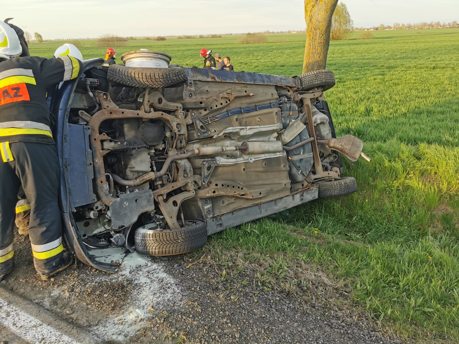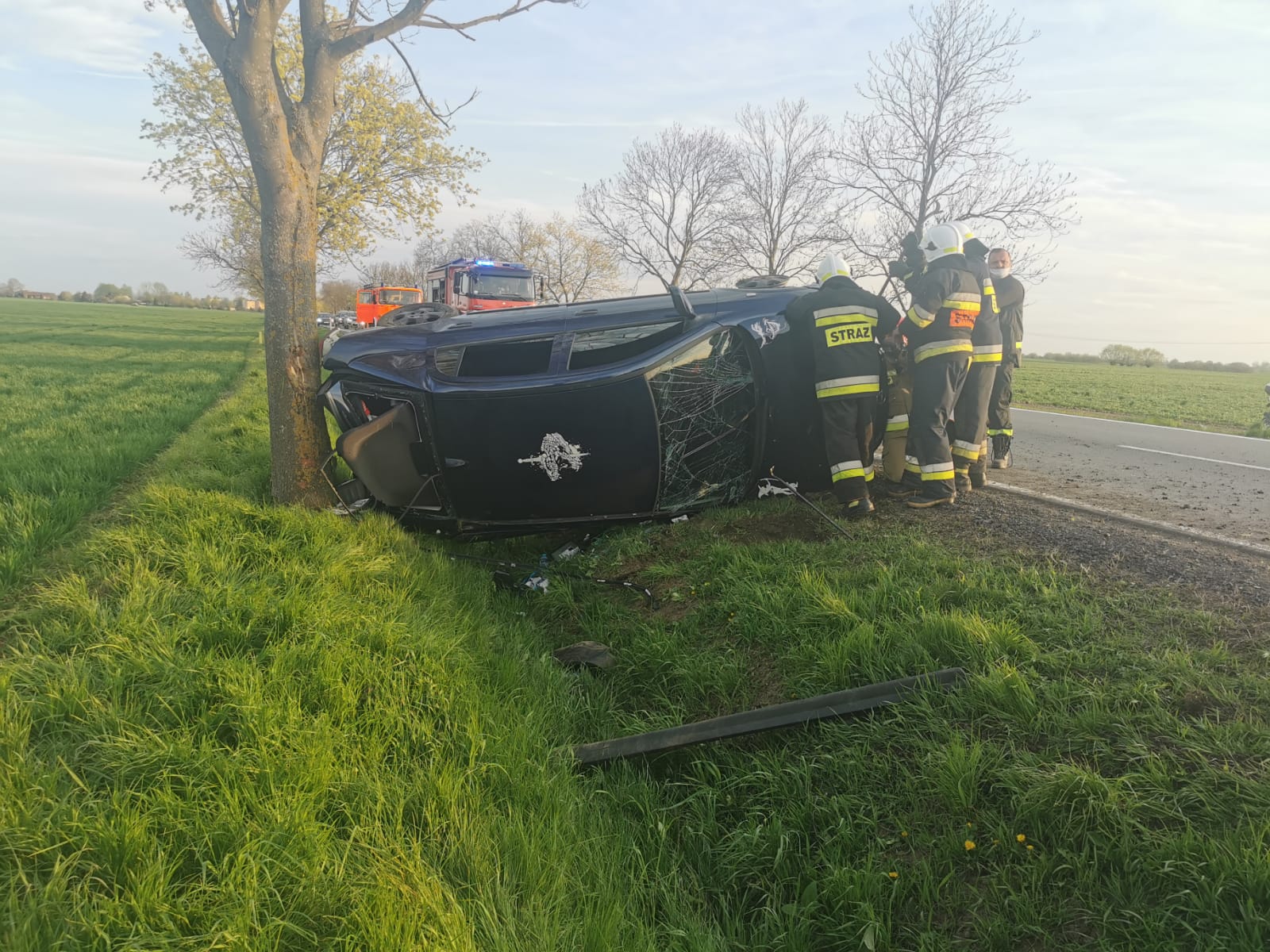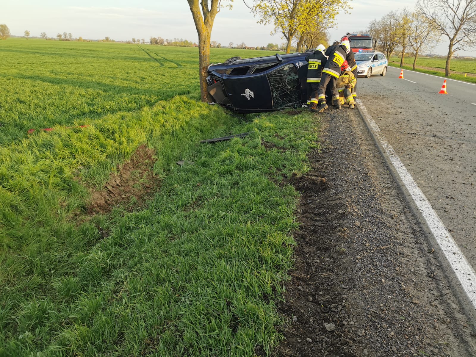 Po dojeździe zastępów GBA 2,5/16, GLBARt z JRG Malbork do miejsca zdarzenia kierujący działaniami ratowniczymi zastał wypadek samochodu osobowego na drodze krajowej nr 55. Samochód znajdował się w rowie na boku. Cztery osoby poszkodowane (kobieta i dwie dziewczynki - 11 i 15 lat i kierujący mężczyzna) poza pojazdem. Podjęte działania – Zabezpieczenie miejsca zdarzenia. Wprowadzono ruch wahadłowy. Dojazd Policji. Udzielenie pomocy medycznej osobom poszkodowanym (wsparcie psychiczne, badanie urazowe, opatrunki, szyna Kramera). Dojazd OSP Lasowice Wielkie i ZRM. Przekazanie osób poszkodowanych ratownictwu medycznemu. Odłączenie akumulatora w pojeździe. Dziewczynka 11 lat z matką zabrane przez ZRM do szpitala. Pozostałe osoby pozostają na miejscu decyzją ratowników medycznych. Od dysponowanie GLBARt. Dojazd technika policyjnego w celu oględzin miejsca zdarzenia. Od dysponowanie GBA z JRG Malbork. Dojazd lawety i pomoc przy załadunku rozbitego samochodu. Usunięcie resztek powypadkowych. Zakończenie działań i powrót do jednostki.