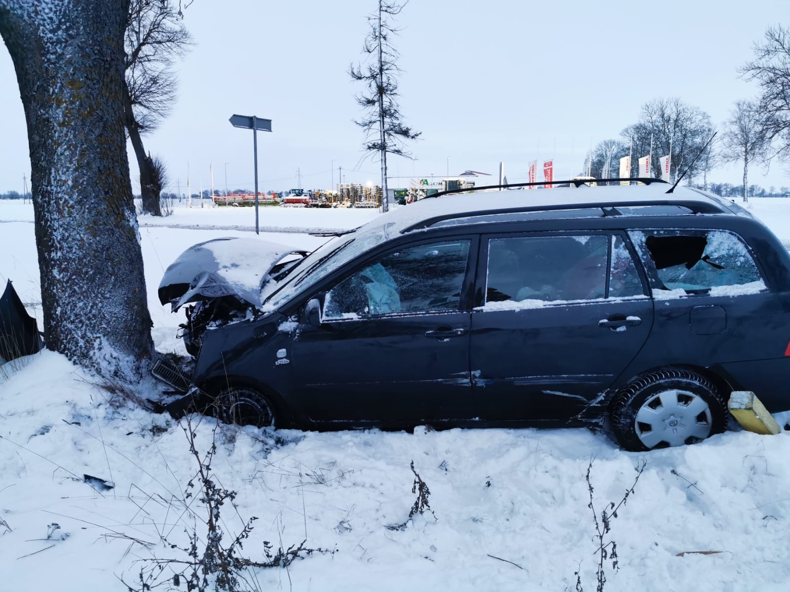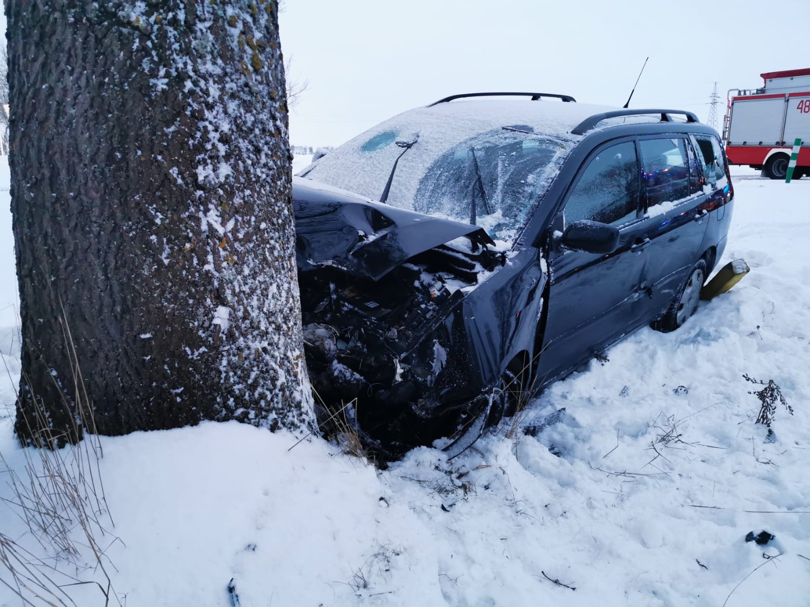 Zadysponowano 2 zastępy z JRG Malbork. Na miejscu zdarzenia zastano samochód osobowy po uderzeniu w drzewo znajdujący się na poboczu drogi. Pojazdem podróżowała jedna osoba, która skarżyła się na ból w klatce piersiowej.