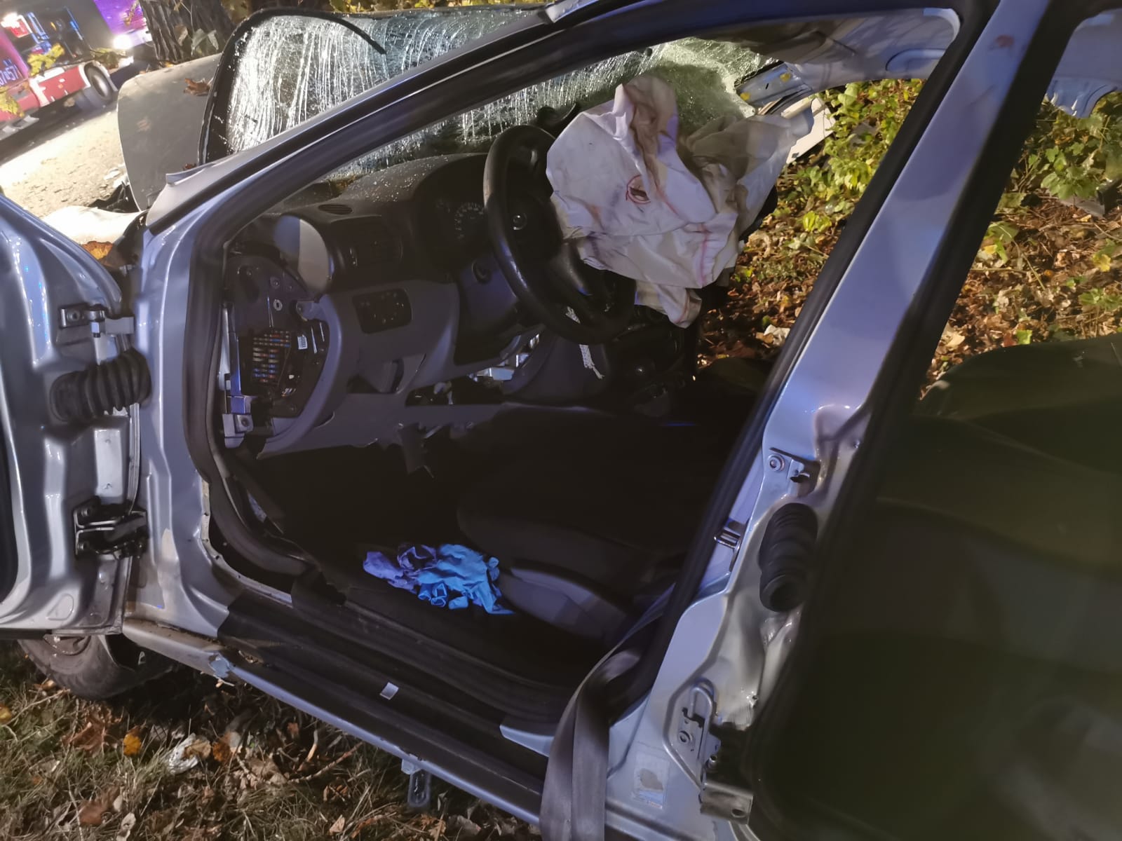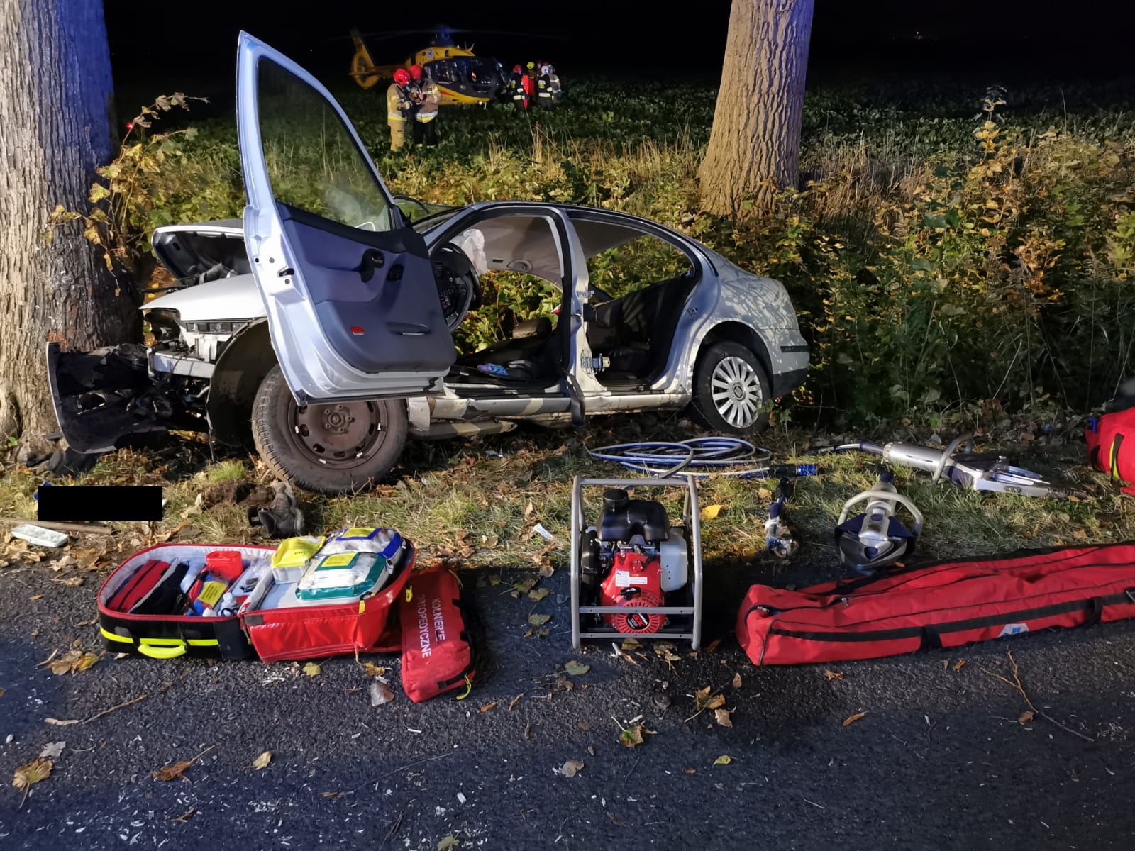 Zadysponowano 2 zastępy z JRG Malbork, 1 OSP Lichnowy i 1 OSP Szymankowo. Po dojeździe zastępów do miejsca zdarzenia zastano samochód osobowy Seat Toledo po zderzeniu z drzewem. W środku 2 osoby poszkodowane, uwięzione - mężczyzna i chłopak.