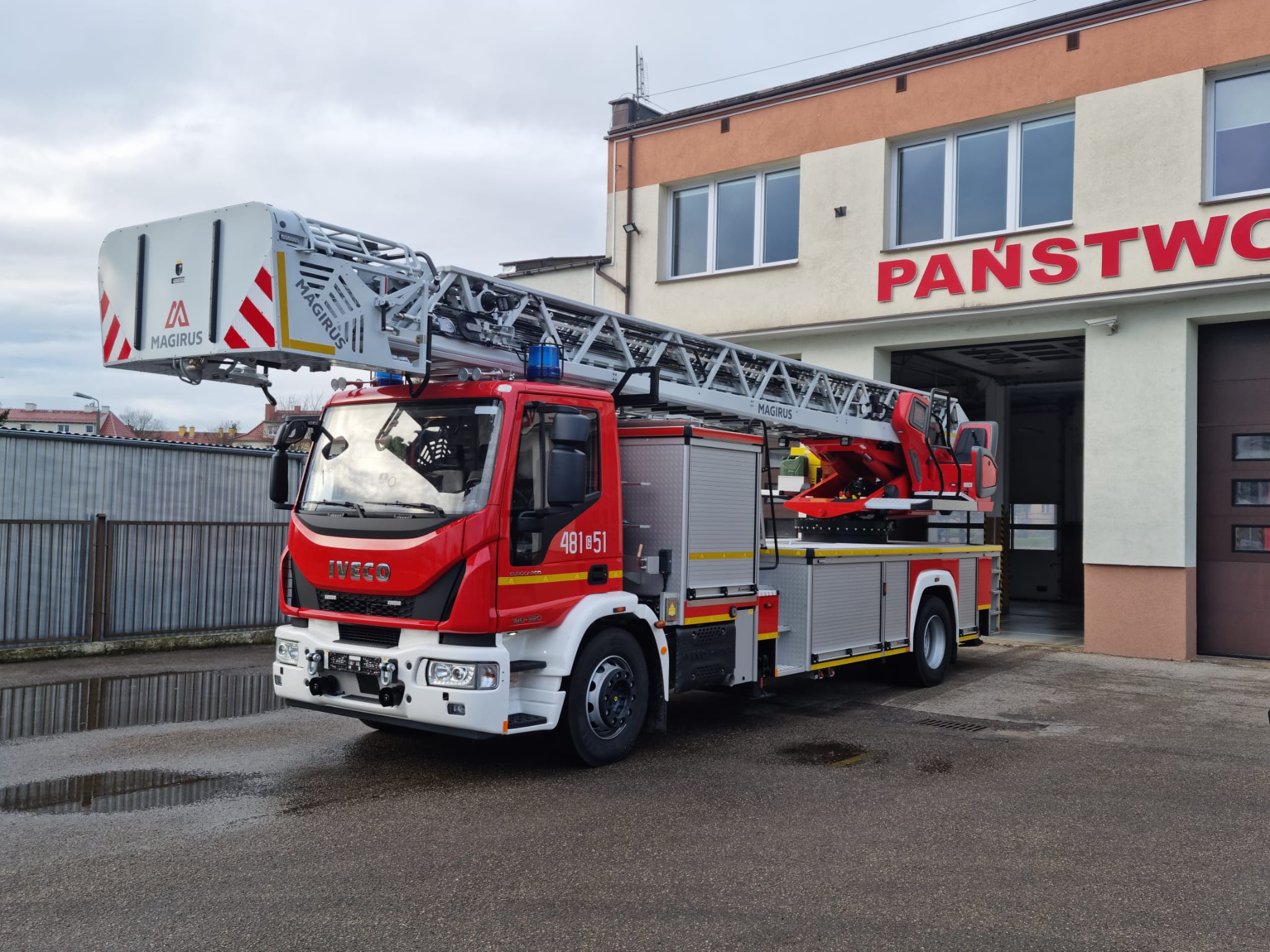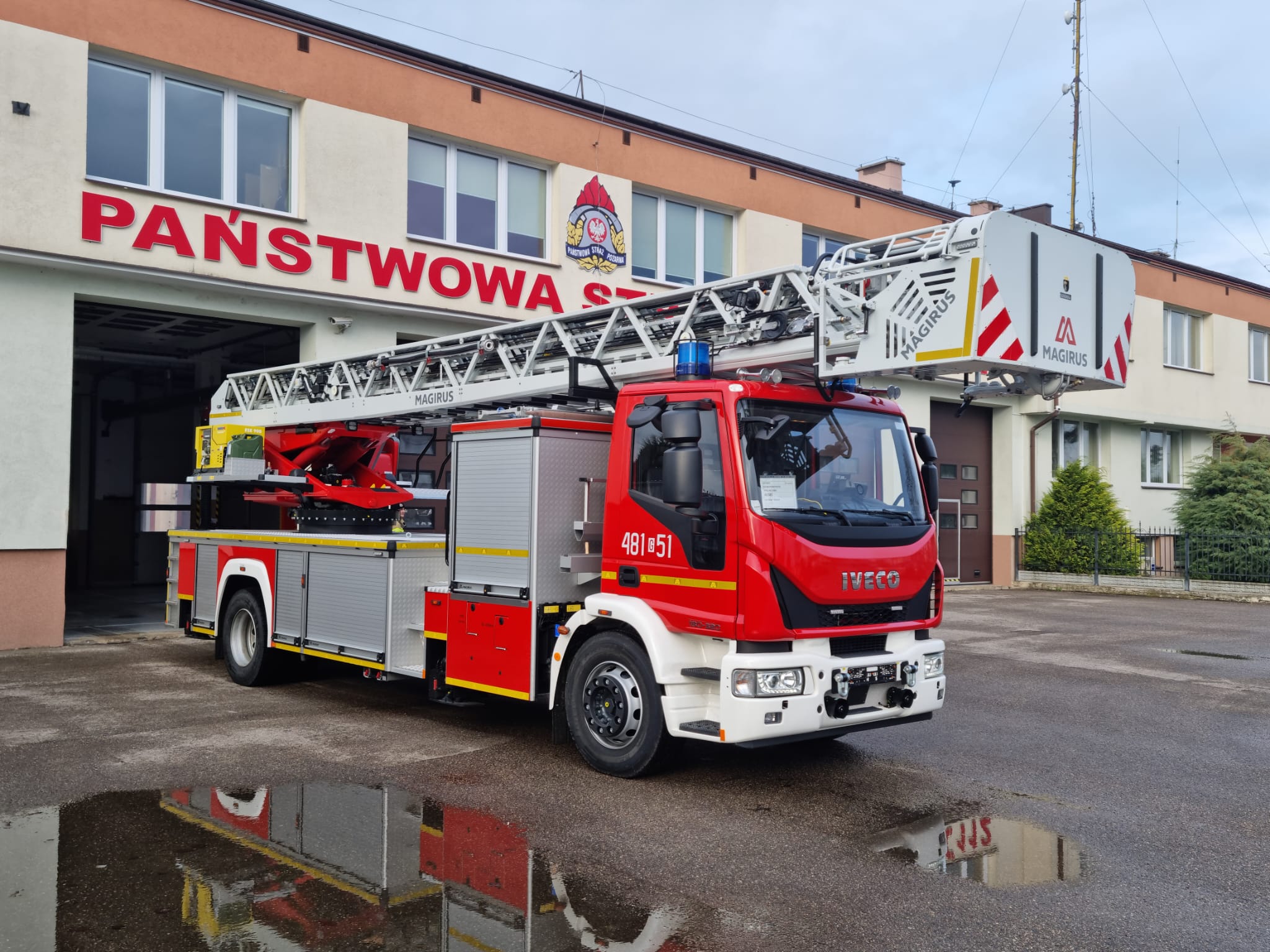 Drabina mechaniczna o wysięgu do 42m. Jest to nowoczesna drabina z ostatnim przęsłem łamanym oraz koszem ratowniczym o udźwigu 500 kilogramów. Posiada pełne sterowanie komputerowe (CS). Kosz drabiny dostosowany jest do przewożenia 5 osób. Do tego posiada m.in. działko wodno-pianowe, nosze do mocowania w koszu, agregat prądotwórczy, sprzęt ochrony układu oddechowego, a także sprzęt oświetleniowy i łączności.