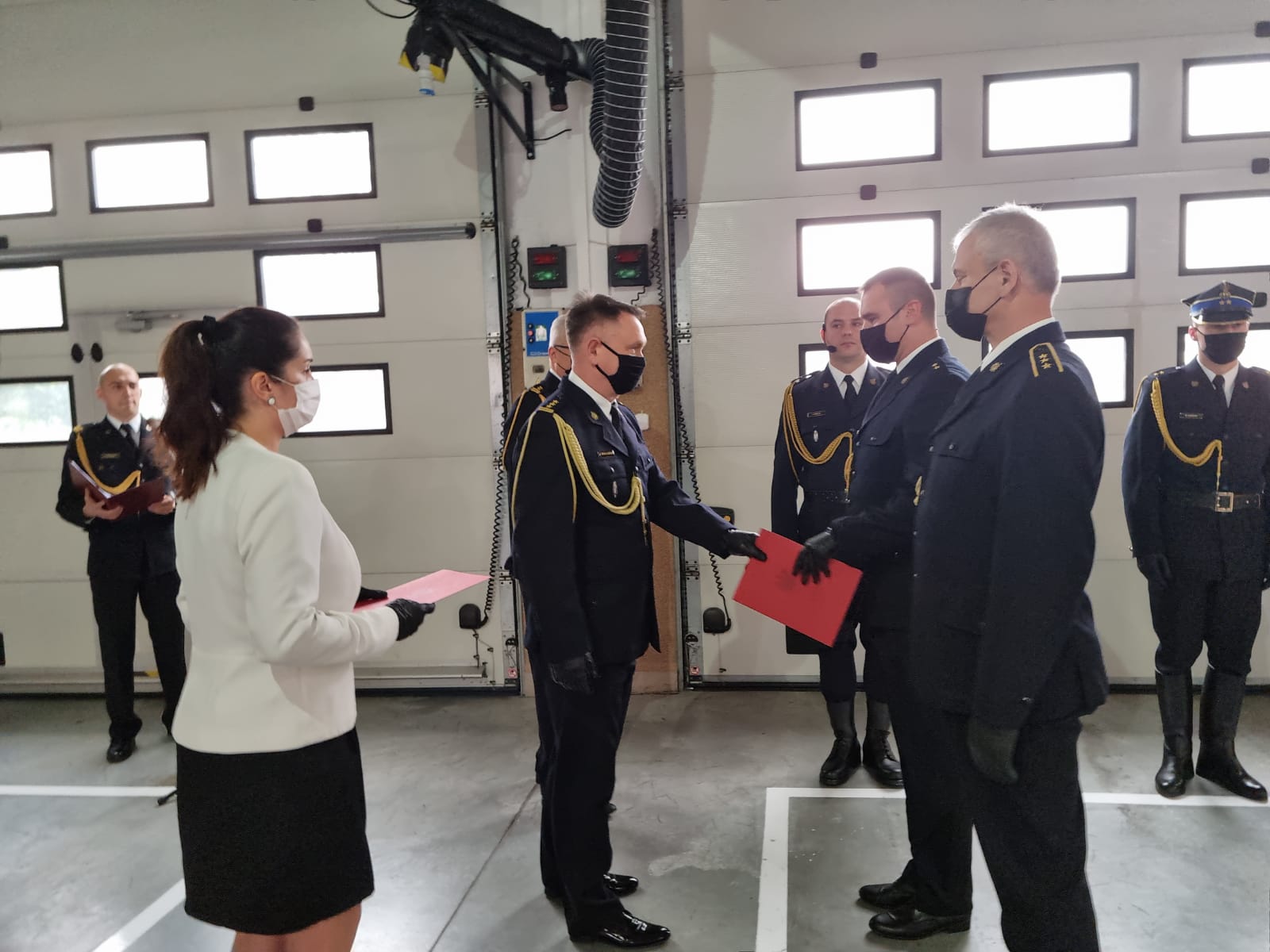 Uroczyste spotkanie było też okazją do wręczenia odznaczeń i awansów na wyższe stanowiska służbowe, które wręczył Zastępca Pomorskiego Komendanta Wojewódzkiego PSP st. bryg. Tomasz Siemiętowski oraz Komendant Powiatowy PSP w Malborku bryg. Mariusz Dzieciątek.