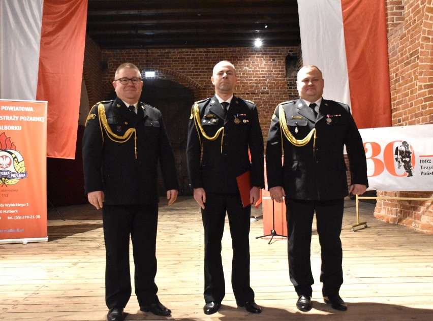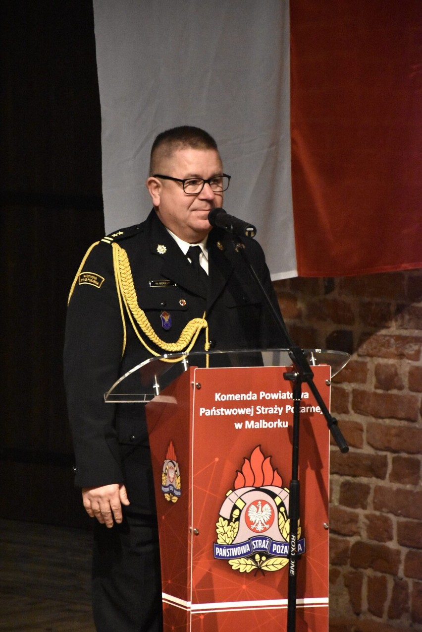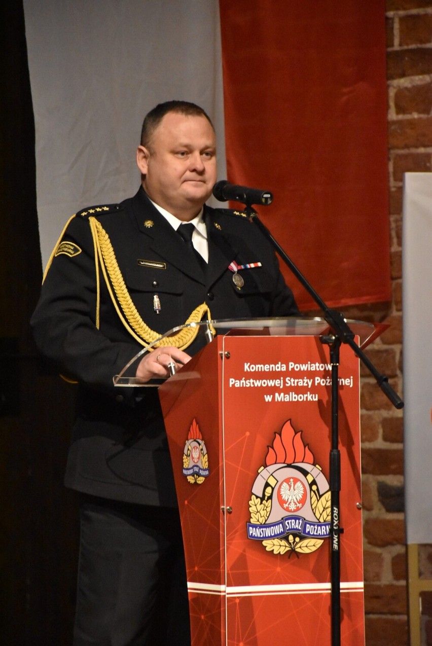 Podczas uroczystości wręczone zostały awanse, wyróżnienia, dyplomy i nagrody dla funkcjonariuszy z komend powiatowych PSP Malbork i Nowy Dwór Gdański oraz akt powołania Pana bryg. Adama Taflińskiego na stanowisko zastępcy komendanta powiatowego PSP w Malborku.