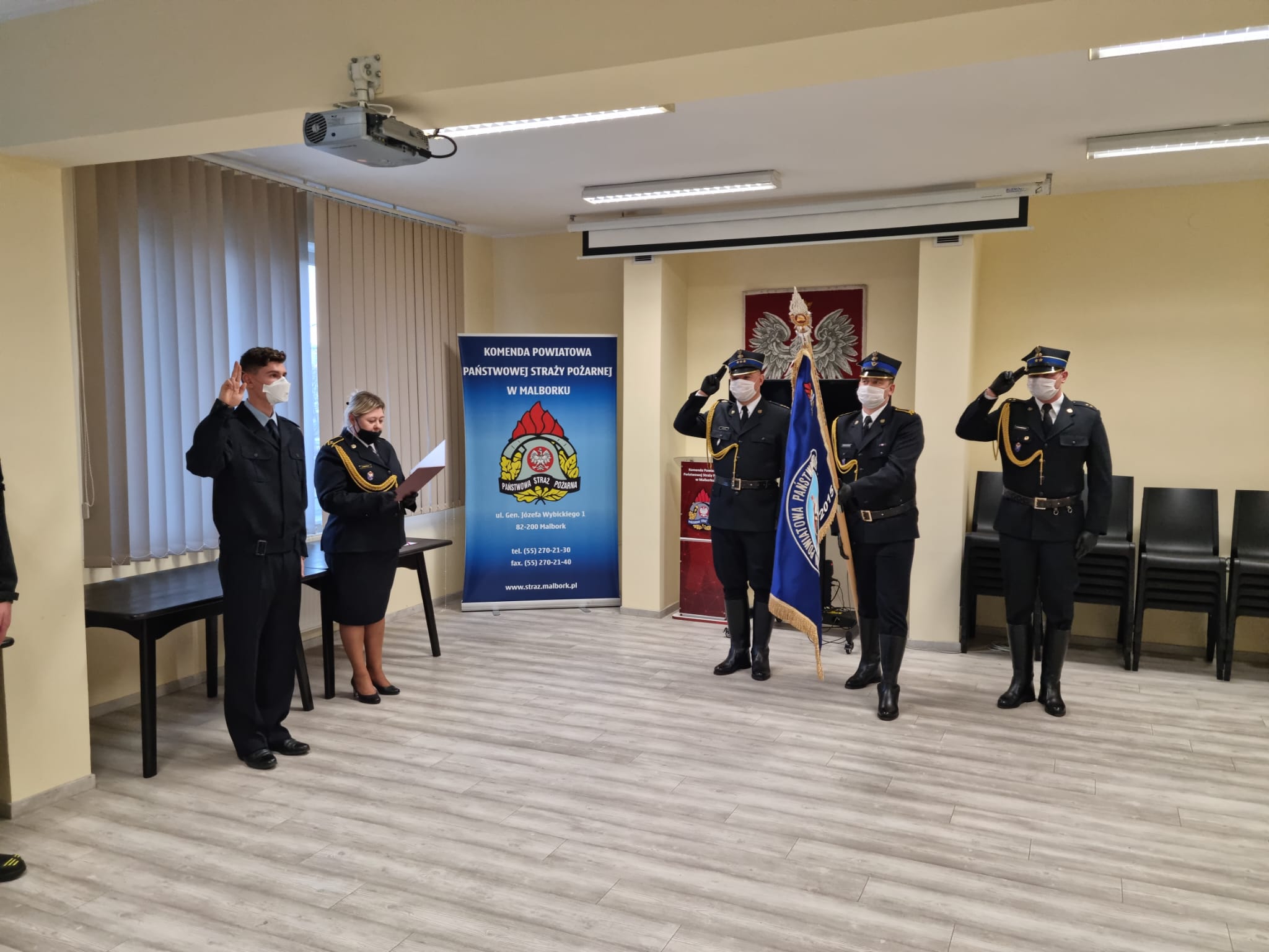 03 grudnia 2021 roku w siedzibie Komendy Powiatowej PSP w Malborku odbył się uroczysty apel z okazji ślubowania, które złożył strażak przyjęty do służby przygotowawczej w Państwowej Straży Pożarnej.
