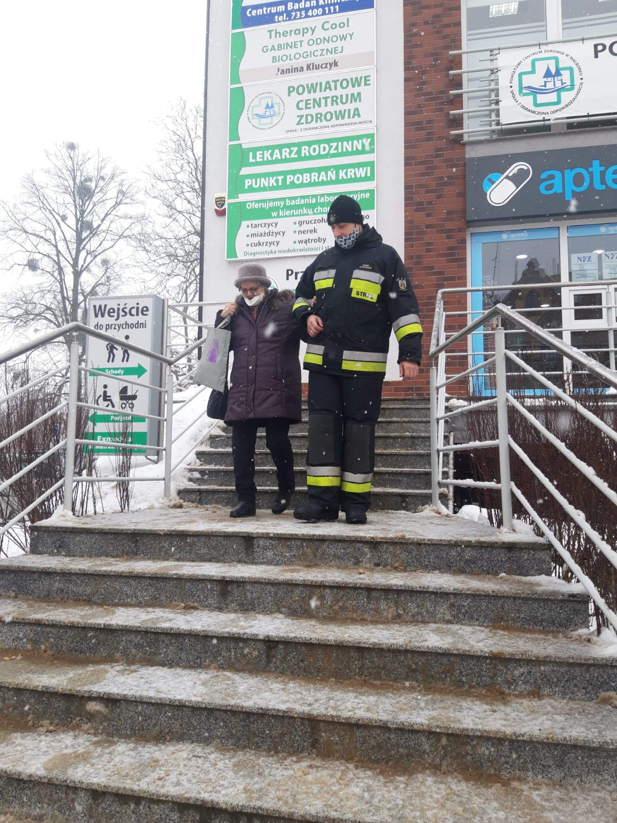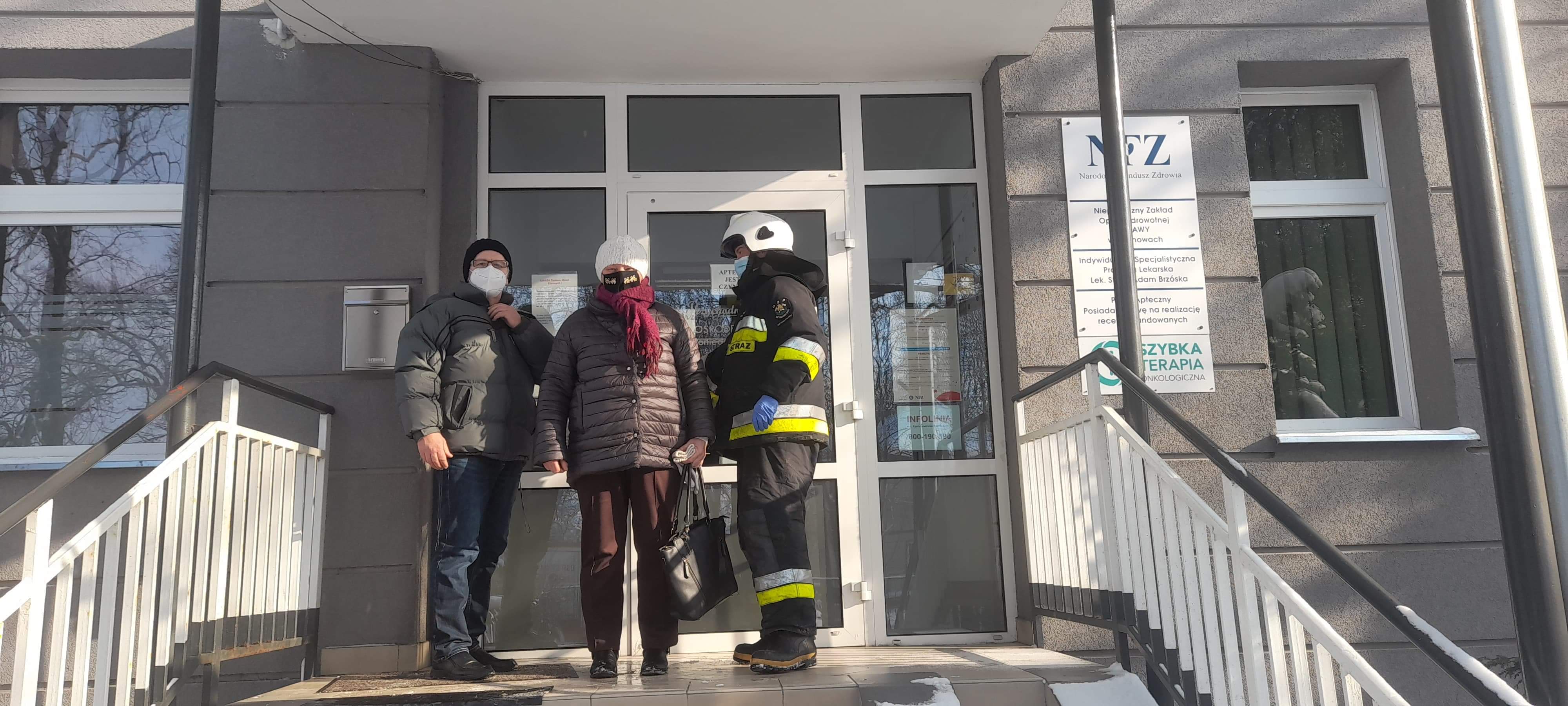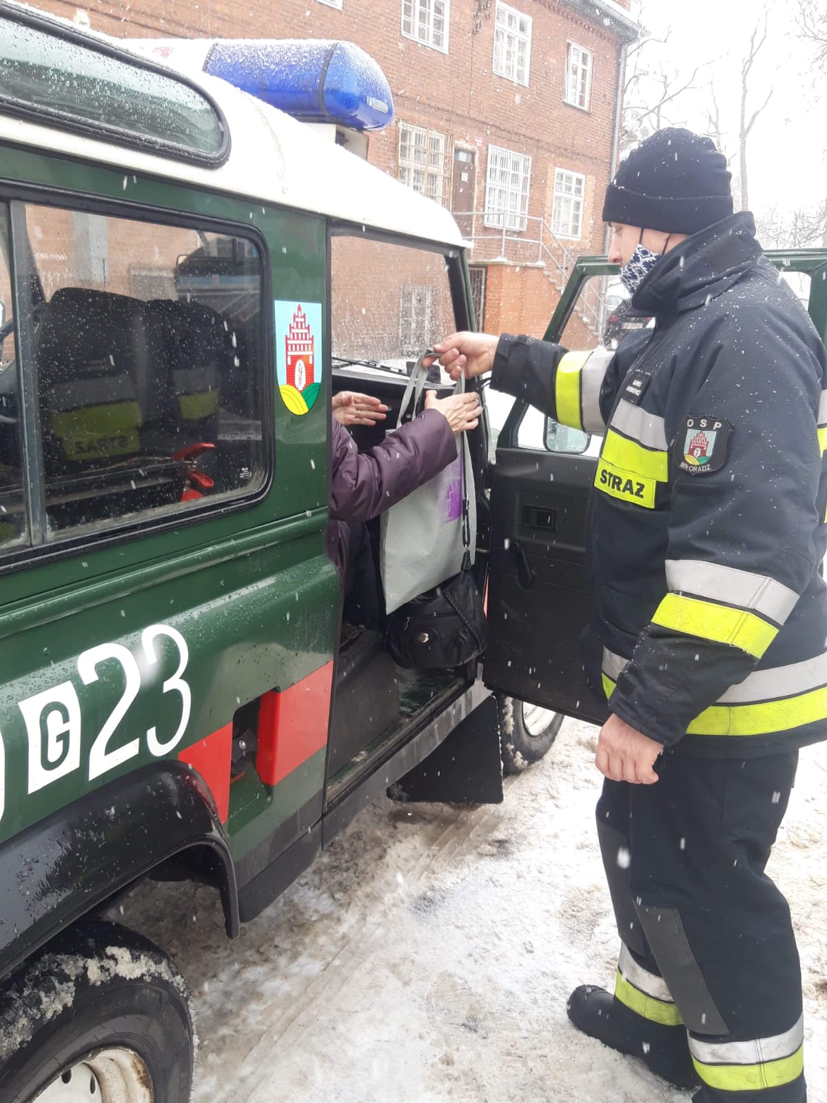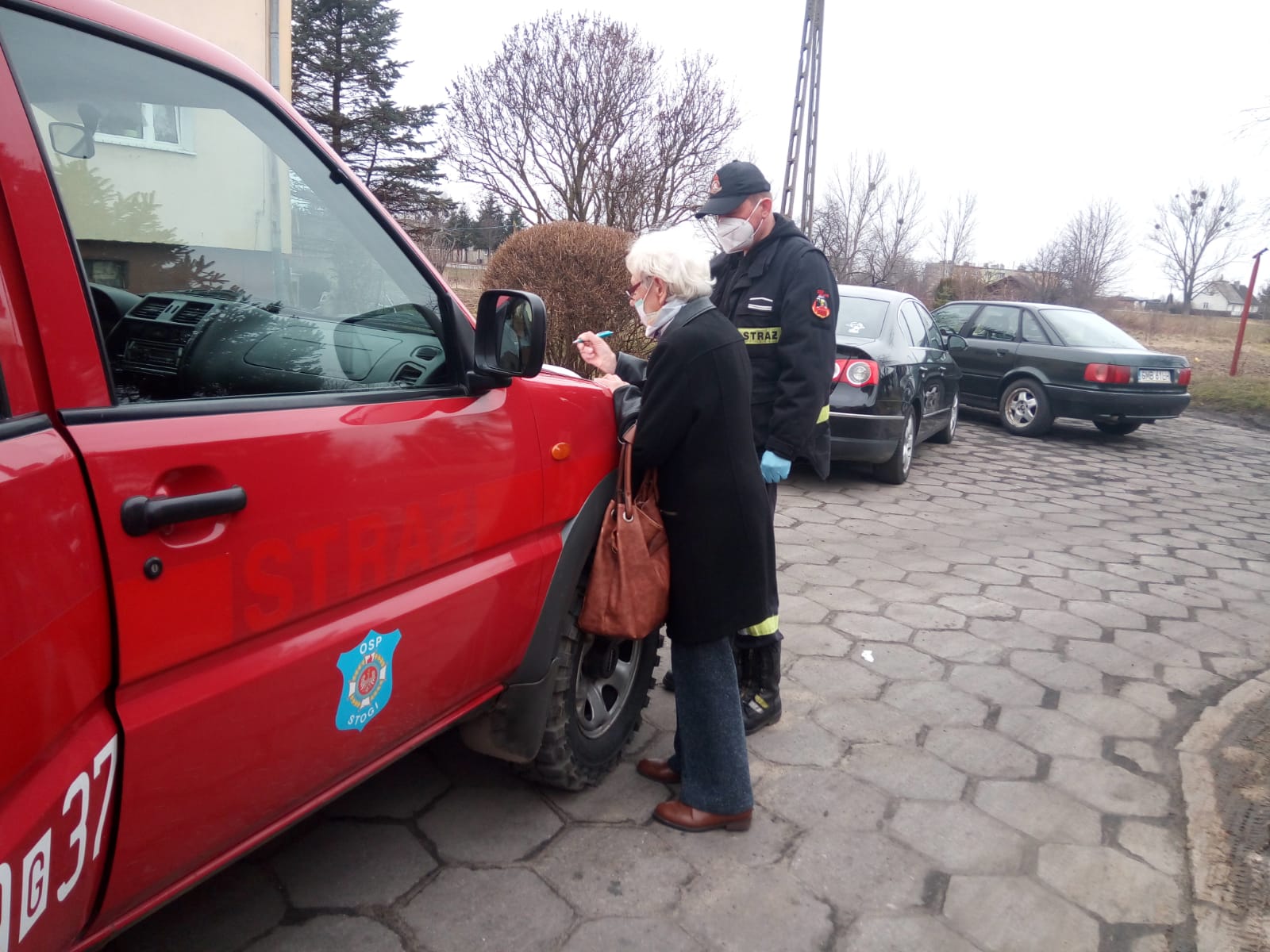 Strażacy powiatu malborskiego w ramach prowadzonych działań rozpoczęli transport osób starszych do punktów szczepień oraz przekazywanie materiałów informacyjnych na temat szczepień i profilaktyki COVID-19.
