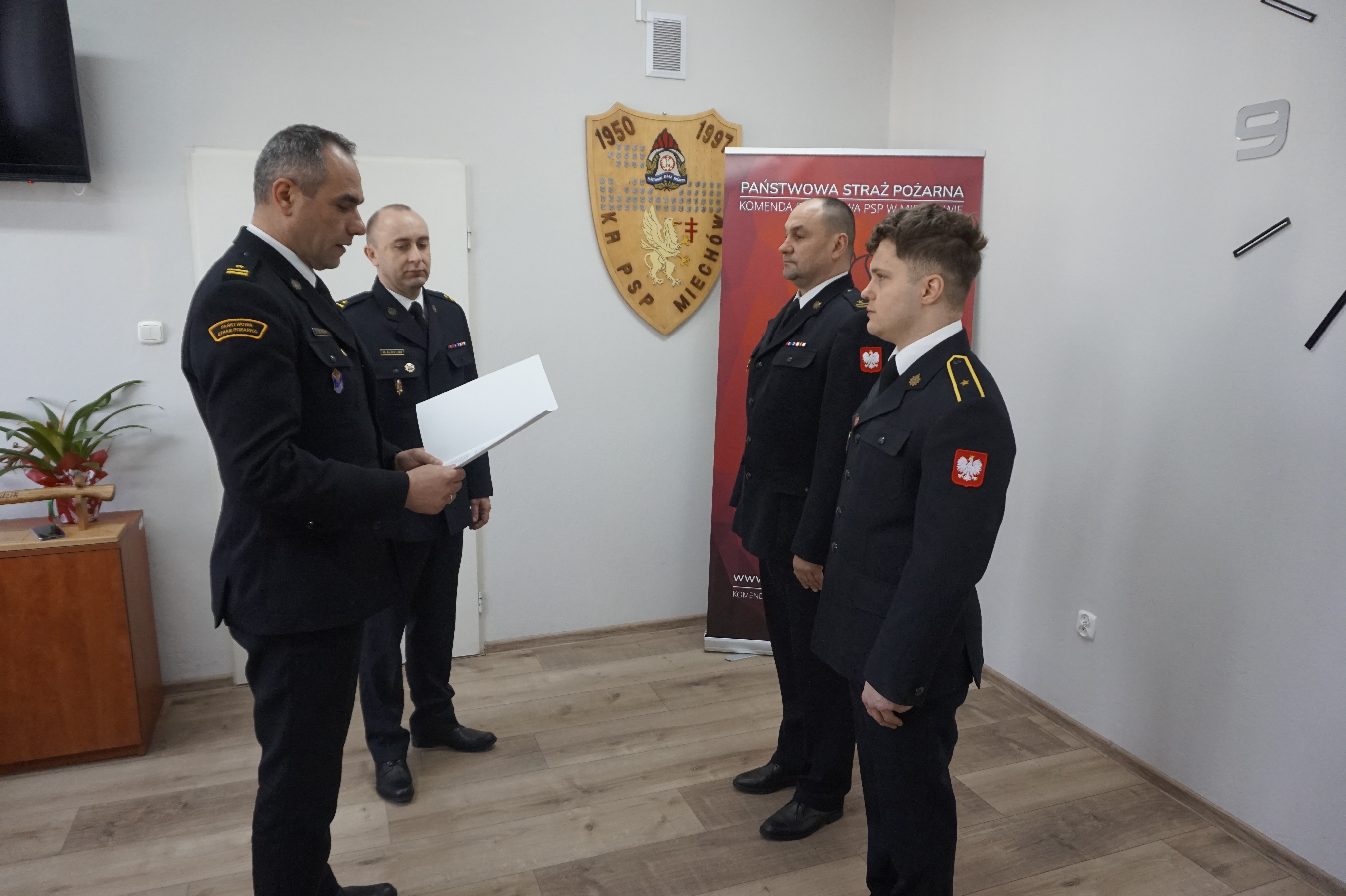 W związku ze wzorowym wykonywaniem czynności służbowych Komendant Powiatowy Państwowej Straży Pożarnej w Miechowie mł. bryg. Mariusz Idzik w dniu 1 kwietnia 2024 r. mianował jednego funkcjonariusza systemu zmianowego na wyższe stanowisko służbowe.