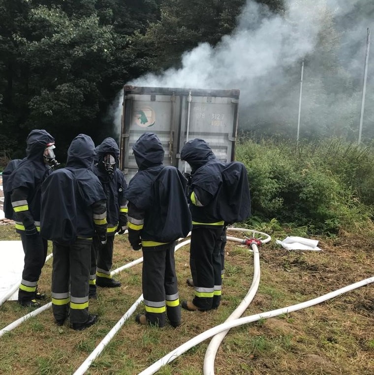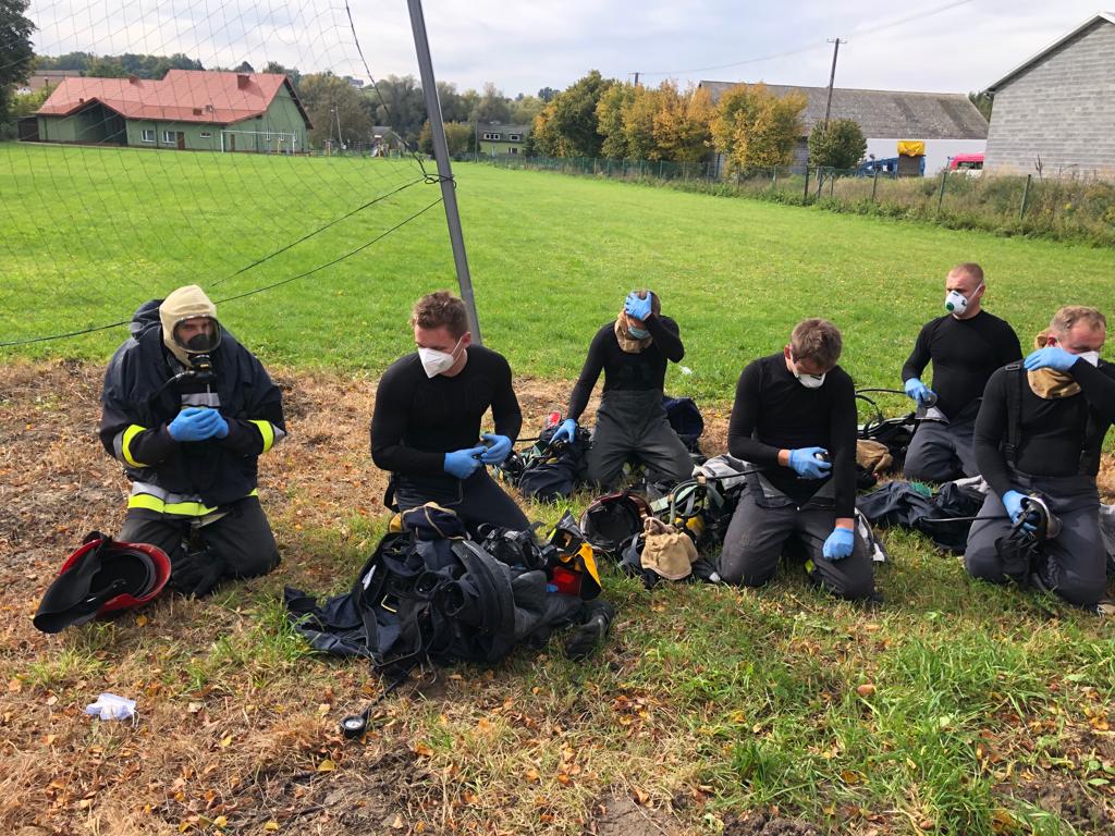 W dniach 5,6,10 października 2022 roku strażacy z Jednostki Ratowniczo – Gaśniczej Państwowej Straży Pożarnej w Miechowie w ramach doskonalenia zawodowego przeprowadzili ćwiczenia z taktyki zwalczania pożarów wewnętrznych w komorze ogniowej. Ćwiczenia miały za zadanie wytworzenie w kontrolowanych warunkach takich zjawisk jak: zapalenie gazów pożarowych oraz wsteczny ciąg płomienia a także obserwacji rozwoju pożaru, dynamiki tego zjawiska i zagrożeń jakie towarzyszą pożarom wewnętrznym. Jest to również sprawdzian ich odporności na trudne warunki i obciążenie cieplne w sytuacji pożaru. Przed przystąpieniem do właściwego ćwiczenia przypomniano zasady bhp oraz techniki operowania prądami gaśniczymi w pożarach wewnętrznych. Regularne szkolenia miechowskich strażaków na dostępnym obiekcie w Falniowie prowadzone są przez instruktorów posiadających uprawnienia do realizowania zajęć z zakresu gaszenia pożarów wewnętrznych.