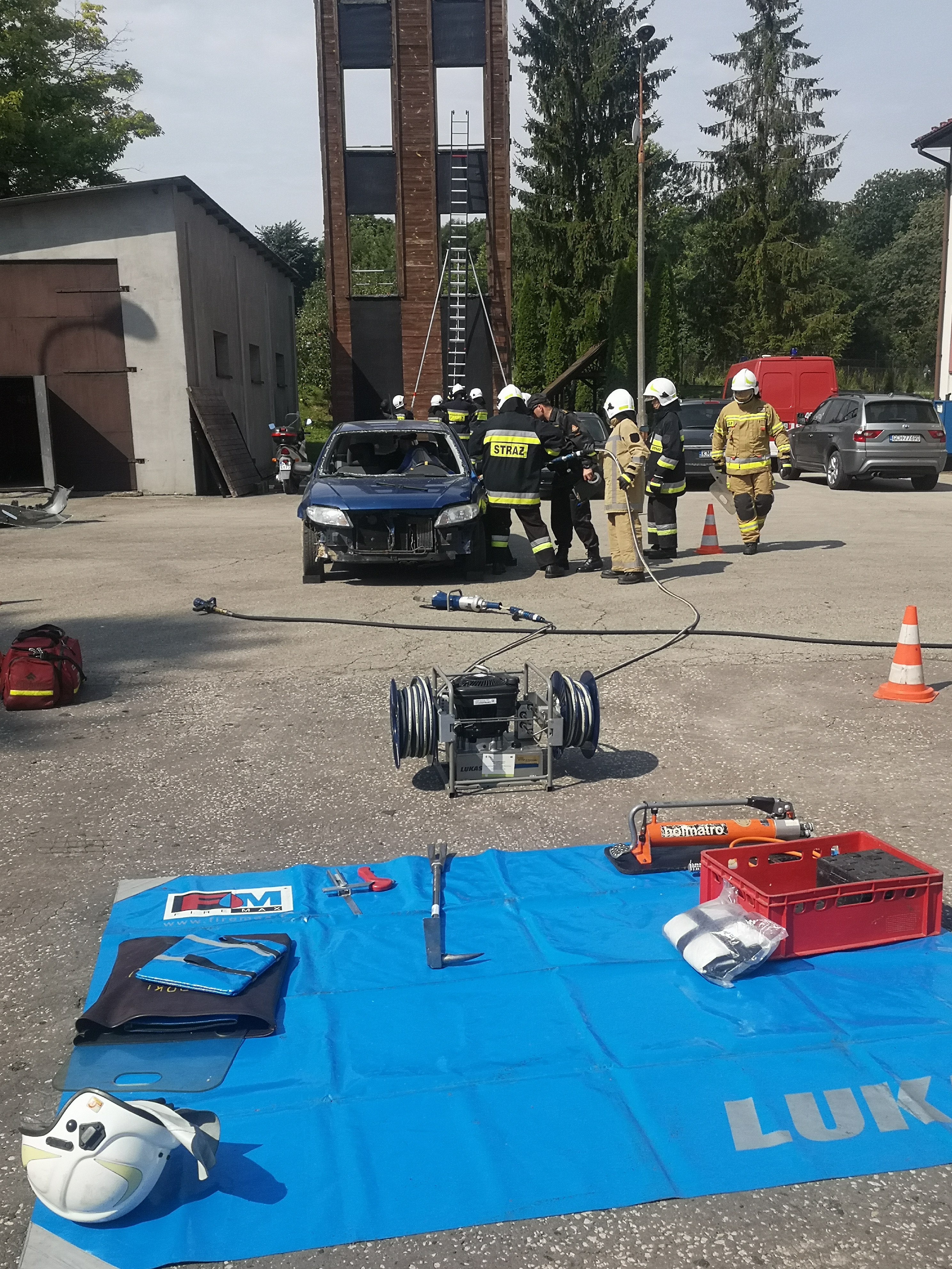 Egzamin praktyczny obserwował Komendant Powiatowy Państwowej Straży Pożarnej w Miechowie mł. bryg. Michał Majda, który w tym samym dniu wydał podpisane przez siebie stosowane zaświadczenia oraz pogratulował wszystkim uczestnikom szkolenia.