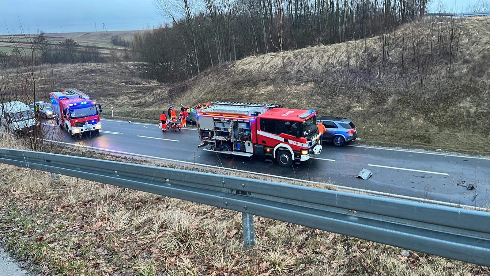 Do groźnego wypadku w miejscowości Podmiejska Wola, na drodze wojewódzkiej 783 stanowiącej obwodnicę Miechowa, doszło w wyniku zderzenia się samochodu osobowego z ciężarówką. Zdarzenie było na tyle poważne, że strażacy do działań zmuszeni byli użyć narzędzi hydraulicznych w celu wykonania dostępu do poszkodowanego mężczyzny. Przez okres prowadzenia działań ratowniczych droga w obu kierunkach była zablokowana. Poszkodowany mężczyzna, decyzją obecnego na miejscu ZRM został przetransportowany do szpitala.
