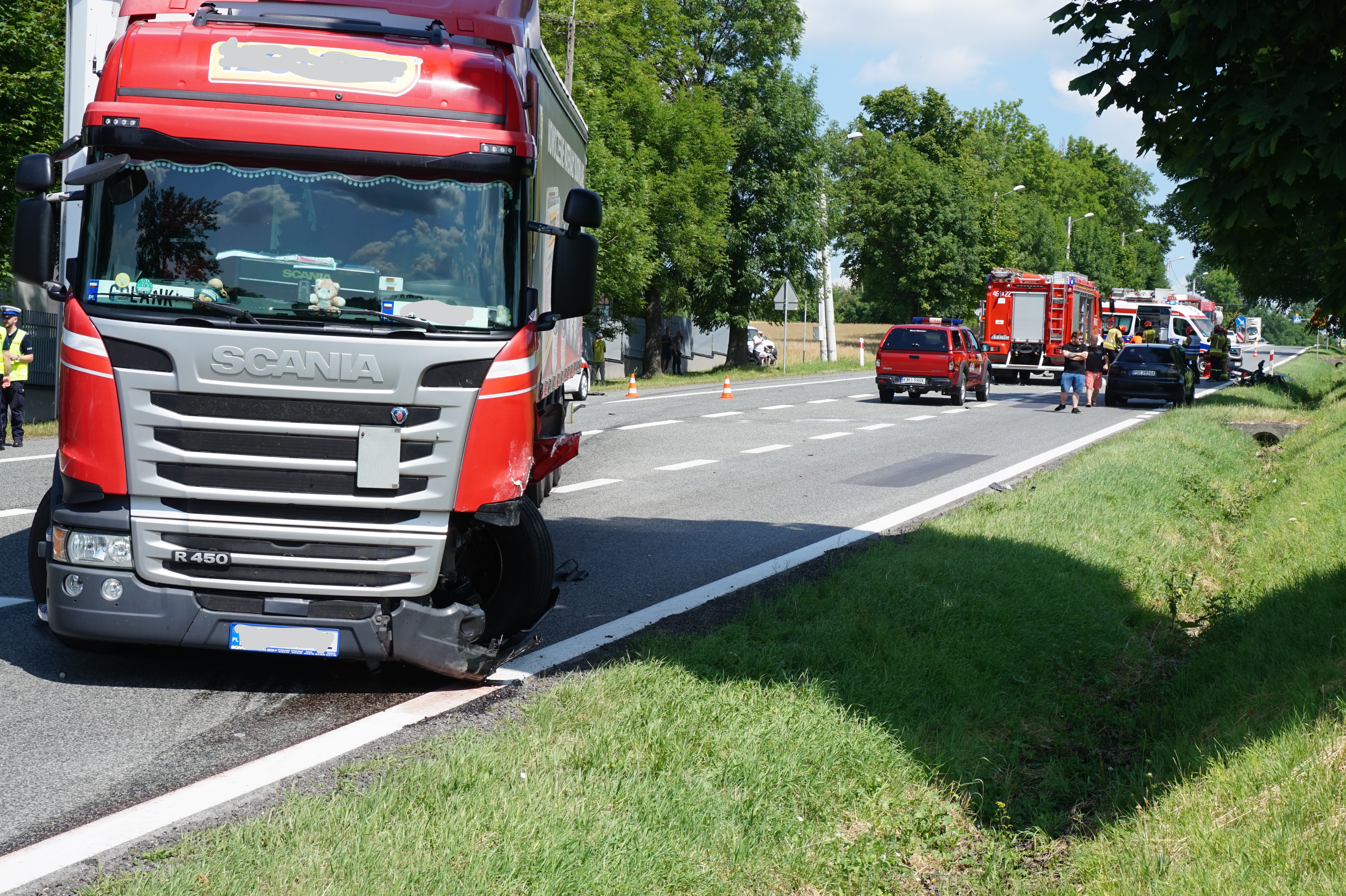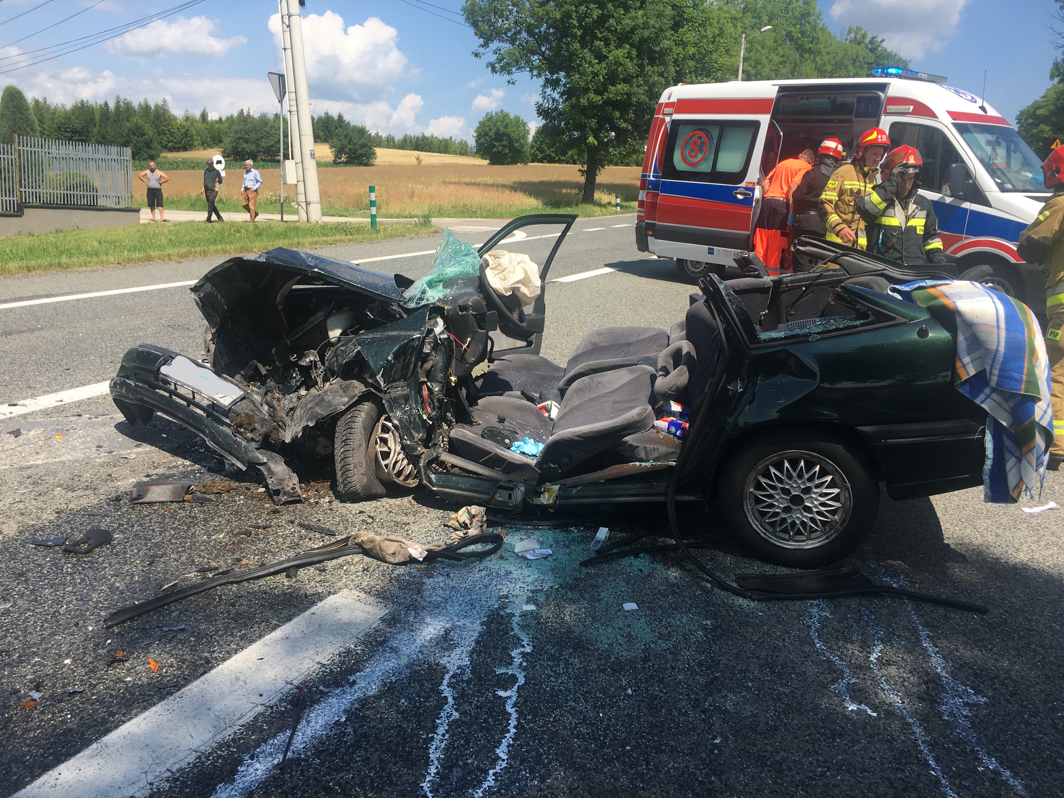 Dyżurny Stanowiska Kierowania Komendanta Powiatowego PSP w Miechowie, przyjął zgłoszenie o wypadku drogowym na DK7 w miejscowości Strzeżów II. Do zdarzenia zadysponował cztery zastępy JRG Miechów. Na miejscu ustalono, iż doszło do zderzenia samochodu osobowego z samochodem ciężarowym. W wyniku zderzenia samochody znajdowały się na jednym pasie jezdni. Na czas prowadzenia działań ratowniczych i czynności policyjnych droga DK7 została całkowicie zablokowana. Kierowca samochodu ciężarowego nie wymagał pomocy medycznej samodzielnie opuścił pojazd , natomiast kierowca samochodu osobowego znajdował się w pojeździe przytomny z zakleszczonymi kończynami dolnymi do których strażacy wykonali dostęp przy użyciu narzędzi hydraulicznych. Po ewakuacji poszkodowanego z pojazdu , przybyły na miejsce Zespół Ratownictwa Medycznego udzielił dalszej pomocy medycznej oraz przetransportował poszkodowanego do szpitala. Na miejsce zdarzenia przybył Zastępca Komendanta Powiatowego oraz Dowódca Jednostki Ratowniczo – Gaśniczej .
