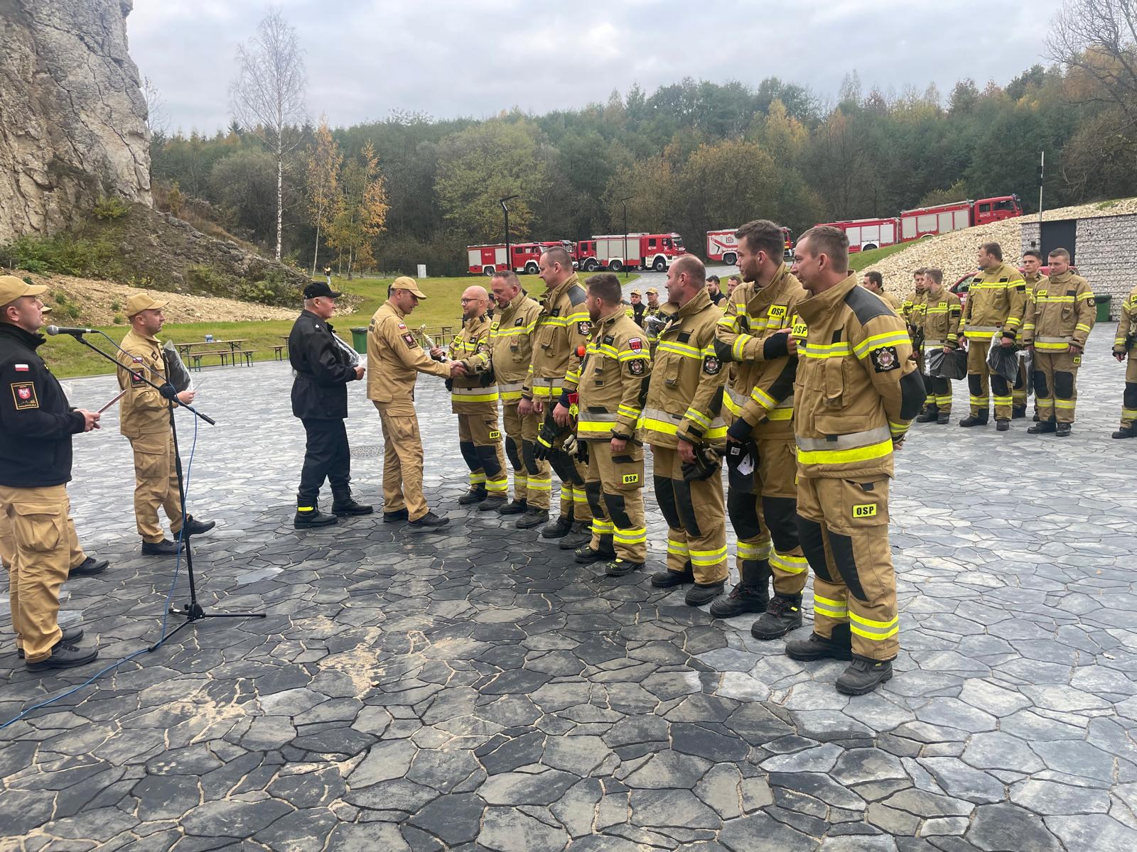 Po zakończeniu zmagań, Komendant Powiatowy PSP w Miechowie mł. bryg. Mariusz Idzik wręczył drużynom nagrody oraz pamiątkowe dyplomy, gratulując wszystkim uczestnikom osiągniętych wyników.